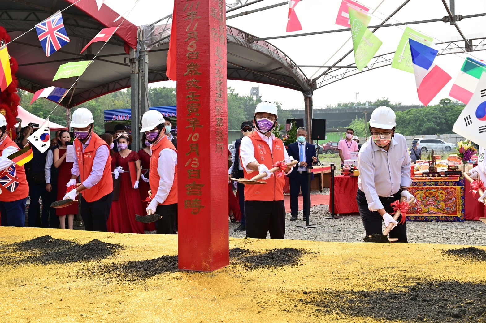 今日動土儀式在祥獅獻瑞的鑼鼓聲中熱鬧開場,蘇院長聽取屏東縣政府農業處長鄭永裕簡報該座加工廠定位與功能、工程概述、進度及經費配置,並於致詞後與現場嘉賓一起進行祈福祝禱儀式,上香祈求工程順利,並執金鏟起鍬三鏟,完成動土儀式。