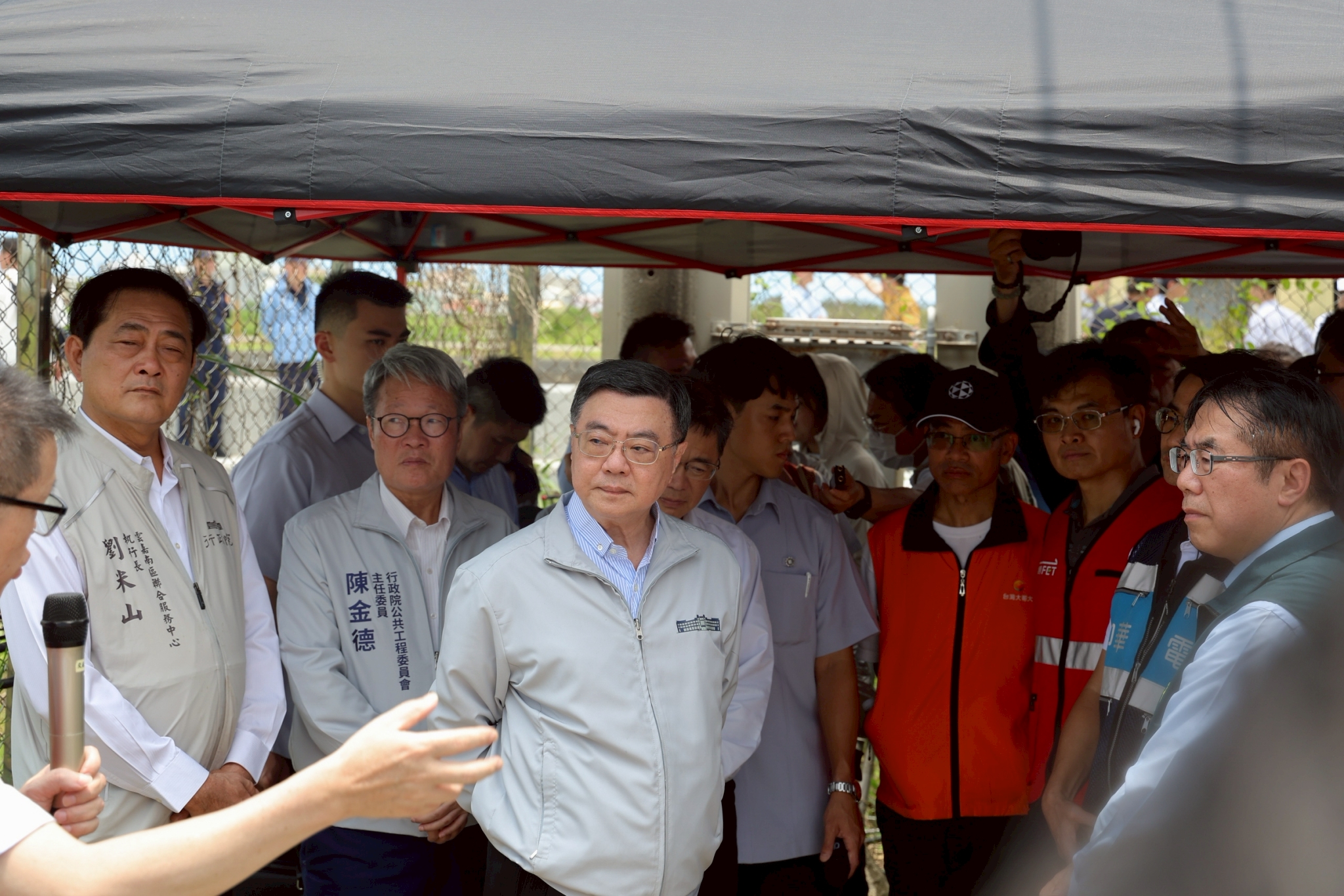 包括行政院陳金德政委、李孟諺顧問、李慧芝發言人、雲嘉南區聯合服務中心劉米山執行長、陳亭妃立委、賴惠員立委、臺南市黃偉哲市長均陪同院長視察民宅損毀情形,院長也給予現場施工人員鼓勵打氣。