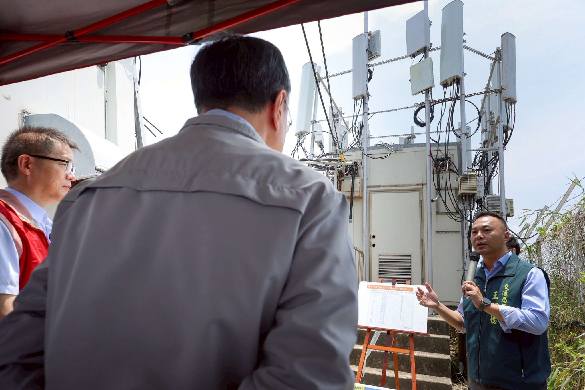卓院長也感謝臺南市黃偉哲市長的協調,並請通傳會持續與業者妥善溝通,政府也會致力協助強化通訊防災韌性工作,共同研議更好的基地臺設置地點;至於市民朋友在此期間受到通訊不便的影響,也請相關業者主動積極,依契約內容提供關懷補償措施。包括陳金德政委、李孟諺顧問、李慧芝發言人、雲嘉南區聯合服務中心劉米山執行長、通傳會陳崇樹代理主委及臺南市黃偉哲市長均陪同院長視察。