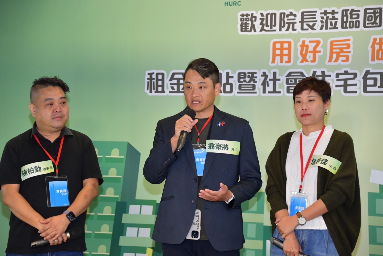 陳院長表示,從內政部花敬群次長兼國家住都中心代理董事長報告「社會住宅暨300億元中央擴大租金補貼專案計畫執行成果」,以及參與社會住宅包租代管計畫的房客、房東及業者分享經驗與心得後,令他相當感動。這些成果都是政府為了實現「居住正義」所做的努力,希望能夠擴大對租屋族的照顧及減輕育兒家庭的負擔,也感謝房東及公益出租人參與相關計畫,當所有人願意伸出雙手互相幫忙,就能創造更美好與和諧的社會,以及不斷進步的國家。