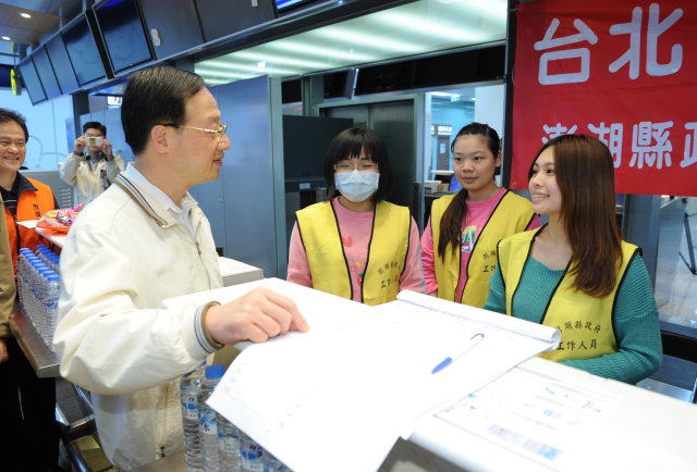 隨後,江院長赴民航局臺北國際航空站視察時表示,離島交通經常受限於天候或其他因素影響服務品質,希望同仁擷取過去經驗,讓交通輸運工作精益求精,並在年假期間,提供大眾安全、有效率,以及貼心便民的服務。