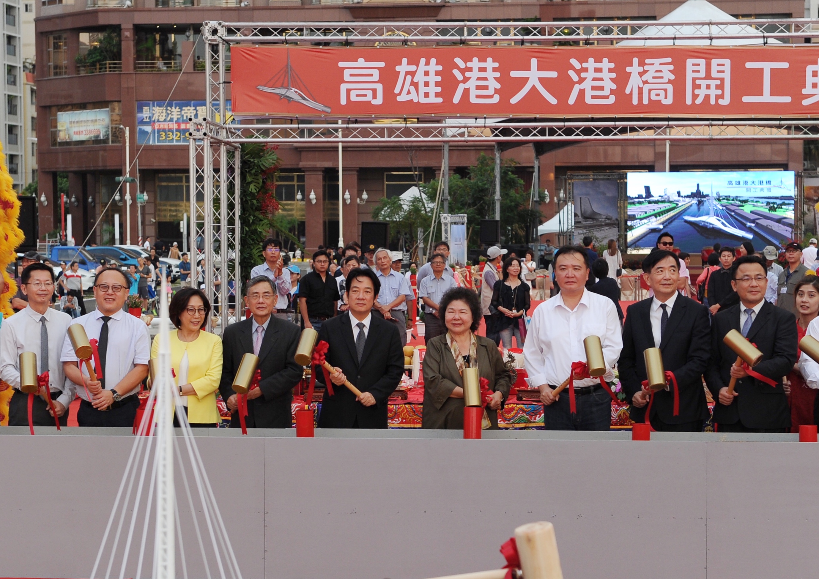 行政院長賴清德今(22)日出席「高雄港第三船渠大港橋暨遊艇碼頭專區擋浪設施新建工程動土典禮」時表示,高雄港地理位置及條件優越,港埠設施完整,且行政效率佳,盼大港橋新建工程動工後,串聯駁二藝術特區及高雄港蓬萊商港區,使高雄港業務蒸蒸日上、高雄市欣欣向榮。