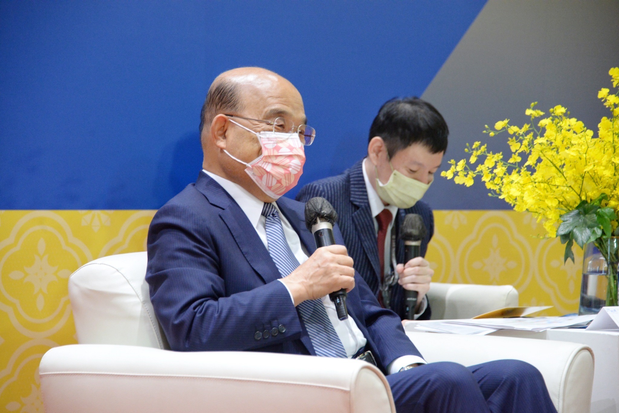 蘇院長致詞時表示,他擔任行政院長多年,每年臺灣都會接待許多國外留學生,今天則是他首度在行政院接待烏克蘭來臺留學生。為了表示熱忱歡迎,行政院特別開放大禮堂,並以烏克蘭國旗上的黃、藍兩色布置會場及擺設,希望藉由今天的會面,傾聽各位學生在臺學習狀況,以及是否遭遇任何困難,需要臺灣政府如何提供協助。
