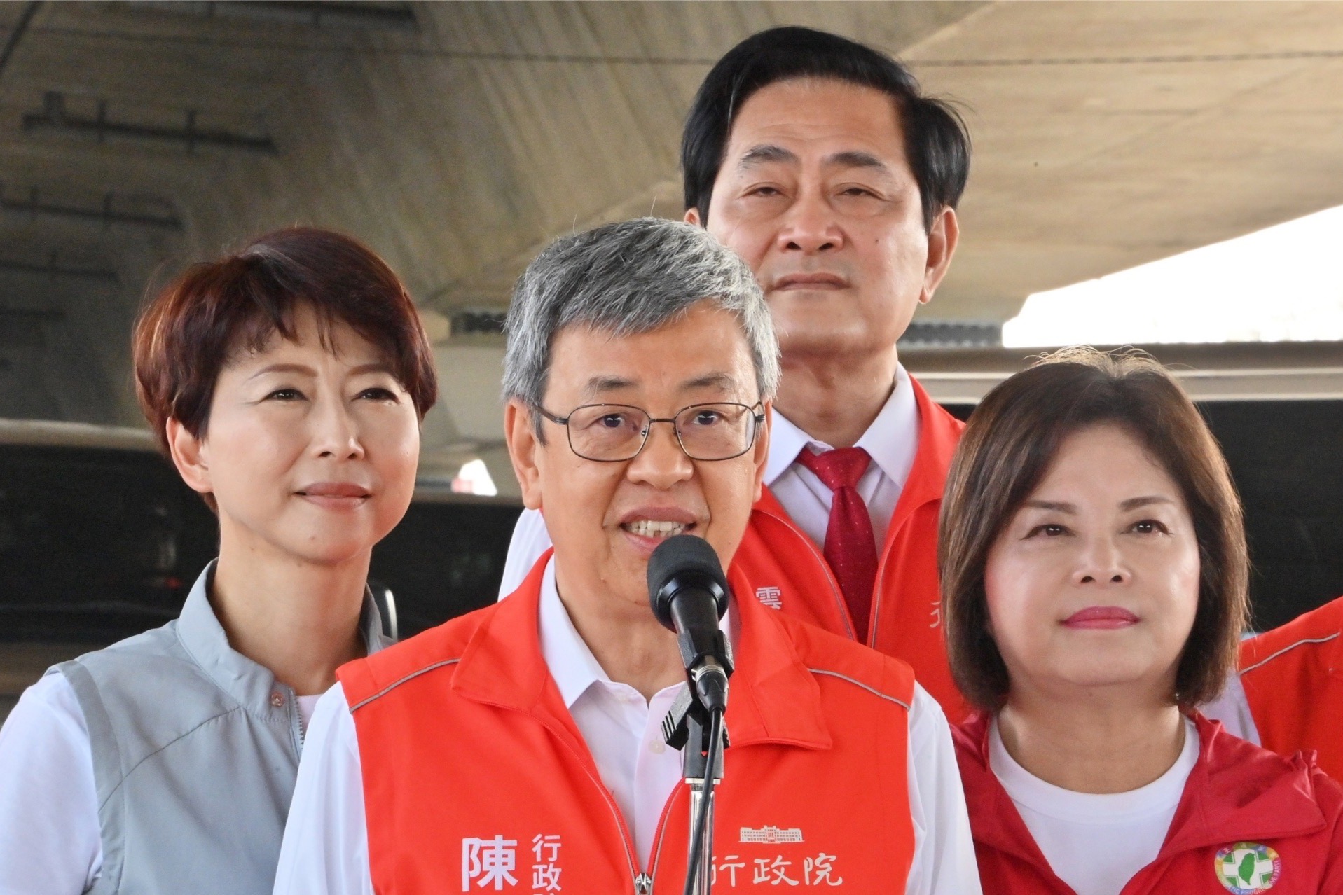 致詞結束後,陳院長與行政院李孟諺秘書長、林子倫發言人、交通部陳彥伯次長、陳亭妃立委、賴惠員立委、臺南市趙卿惠副市長等人進行現地視察,由高公局趙局長進行解說,了解本工程規劃進度及效益。