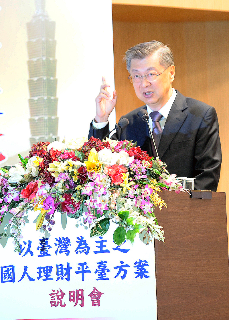 行政院長陳冲今(17)日出席由金管會主辦之「以台灣為主之國人理財平台方案」說明會,他期望在金管會和央行共同努力推動之下,理財平台能奠定穩定的基礎,藉以培育本地資產管理人才,進一步讓非住民的錢也能透過該平台管理,而台灣金融機構也有機會到海外發展並擴充據點。