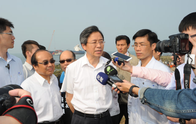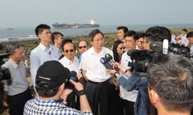 張院長表示,該貨輪前半段甲板上貨櫃,前幾天都已經完成吊離,至於後半段因船身傾斜,仍有三個貨櫃浸泡在海水中,務請把握退潮時間進行相關作業;貨艙內貨櫃吊離進度也已提前,仍請相關機關儘速處理。