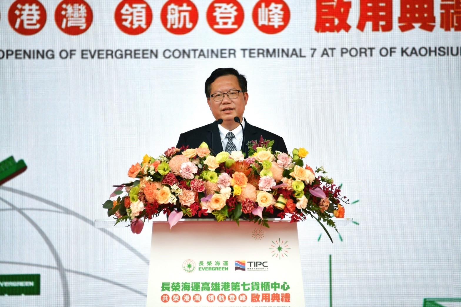 行政院副院長鄭文燦今(14)日出席「高雄港第七貨櫃中心」啟用典禮時表示,政府與民間共同打造的第七貨櫃中心位置優越,且運用智慧化科技,大幅提升貨櫃轉船效率,提升高雄港國際競爭力,期勉港務公司與長榮海運通力合作,共同打造成為全世界最優質的貨櫃中心,爭取更多的航線與貨櫃量來臺。