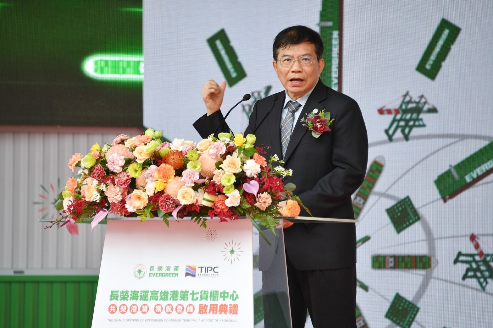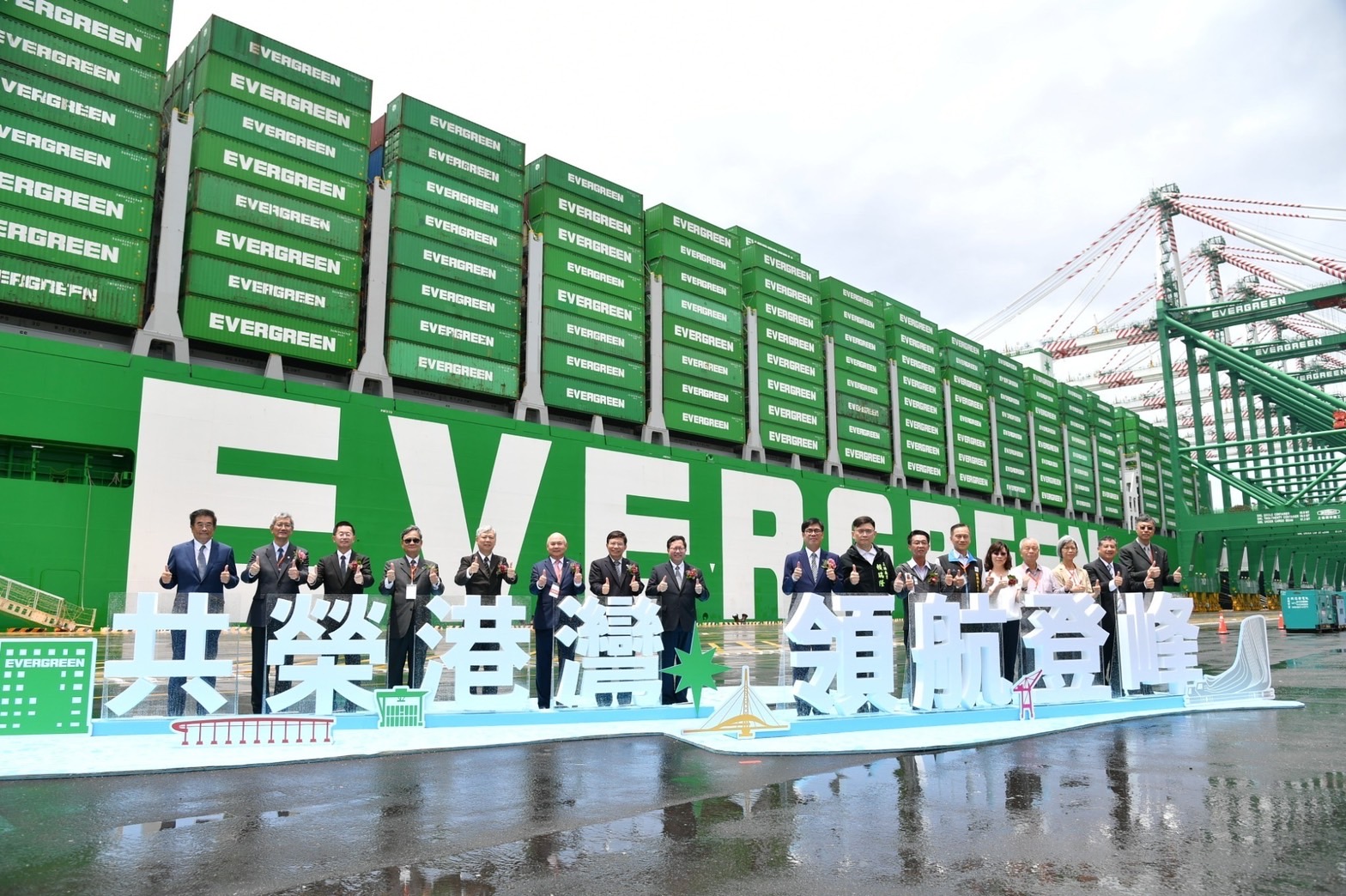 鄭副院長表示,高雄港第七貨櫃中心為國家級最先進全自動化之貨櫃碼頭,兼具進出口及貨櫃轉運之重要樞紐地位,能同時停靠4艘全球最大2.4萬TEU貨櫃輪,占目前高雄港近半運能,可大量減少碳排並提升貨櫃轉船效率,總投資額達新臺幣328億元,其中政府出資203億元。長榮海運順應智慧化科技發展與全球淨零排放趨勢,運用5G通訊、大數據運算、AI人工智慧及物聯網IoT等新興技術,讓貨櫃裝卸智慧化與自動化,大幅升級作業效率,並且降低能源消耗並增強港口安全,兼顧運作效率與環境永續,這不僅是長榮海運的第一次,也是臺灣港口發展的重要一步。