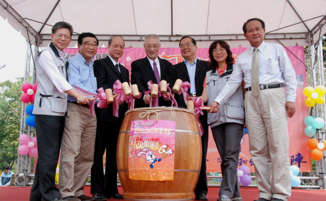 吳院長也期許出席的廠商都能「日進斗金賺大錢、守法重義繳稅多、善待員工闔家樂、節能減碳愛台灣」。