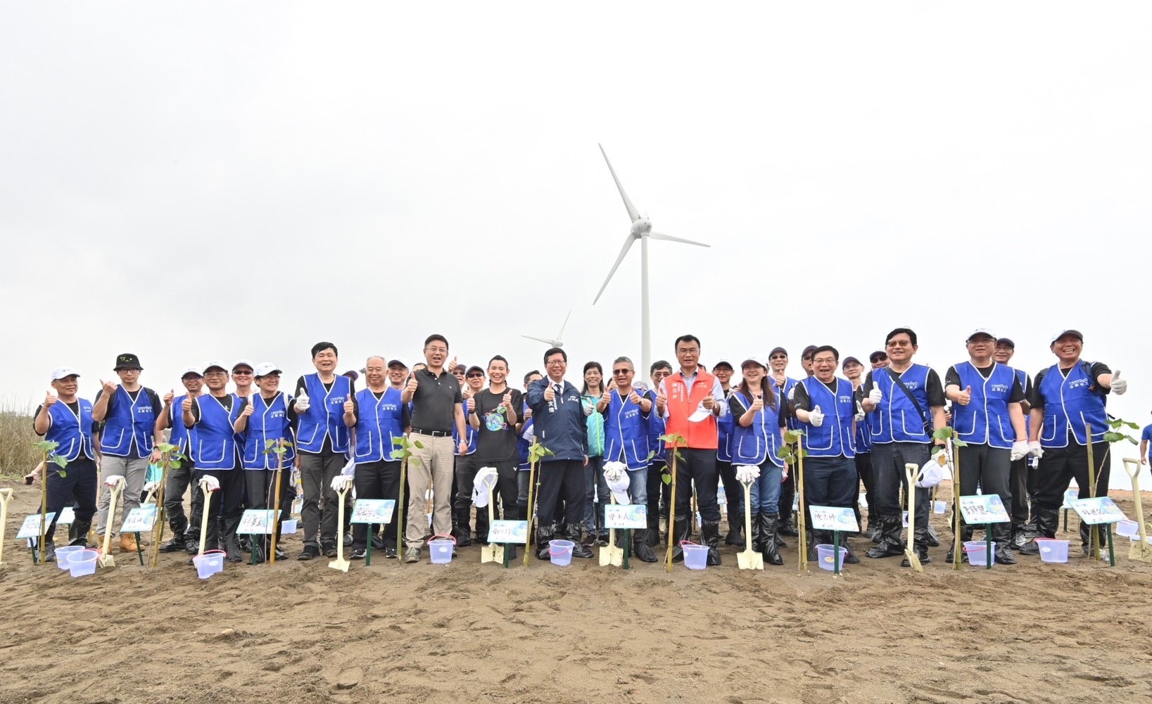 行政院副院長鄭文燦今(21)日參加中華電信攜手戴資穎前進桃園蘆竹海岸植樹活動致詞時表示,今日植樹活動的位置不只是臺灣東北季風最強之處,也是陸域風電架設的起點,更是過去台灣電力公司林口火力發電廠尚未設置脫硫設備前,沿海防風林枯萎的起點,所以這次選擇植樹的地方,未來將會因植樹造林形成海岸長城,一道非常有價值的綠色長城。