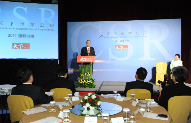 行政院長吳敦義今(10)日出席「天下企業公民獎」頒獎典禮,他肯定民間企業在發展之餘,善盡社會參與責任,並注重環境保護,民間企業之表現,讓台灣經濟發展有豐碩的成果,社會大眾也倍感溫馨。