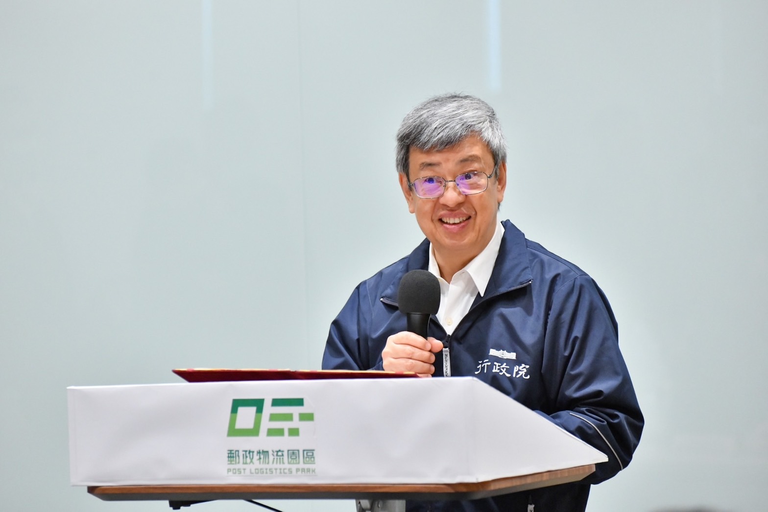 陳院長致詞時表示,臺灣郵政服務最早可追溯到清治時期,至今已超過百年歷史,與民眾生活息息相關。他欣見具有百年歷史的郵政公司積極轉型與創新發展,投入258.5億元資金建置「郵政物流園區」,以「智慧」、「綠能」為目標,規劃各建物取得「綠建築」與「智慧建築」等標章,並導入風力及太陽能發電、雨水回收等永續設施,結合「智慧能源管理」與「智慧感測技術」,打造兼具環保、節能的「智慧園區」。此外,園區內留設近4,000坪的郵政形象公園,連結滯洪池及休閒步道,提供優質休憩場所,更顯示郵政公司在產業發展上,兼具節能永續及環境保護的用心。因此,他今日特別前來視察,除關心郵政物流園區的公共工程、營運及相關規劃外,也期盼未來能朝智慧化、數位化及自動化的方向發展,並發揮公私協力的力量,協助新創事業的育成。