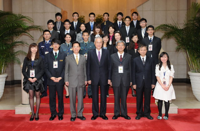 行政院長吳敦義今(28)日下午接見全國優秀青年代表及100年青年獎章得主,期許受獎的陳彥博等11位代表及其他100多位年輕人都能懷抱希望、信心及愛,並傳播給更多人,一起為中華民國努力,為台灣這塊土地做出貢獻。