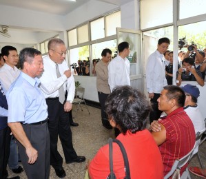 今天是H1N1新型流感疫苗開始接種的第一天,第一順位接受疫苗接種的是莫拉克風災的災民,行政院長吳敦義特別關心民眾疫苗接種的執行情形,今(1)日在行政院衛生署長楊志良的陪同下,前往高雄縣大樹鄉仁美營區,實地探視風災安置中心居民疫苗接種情形。