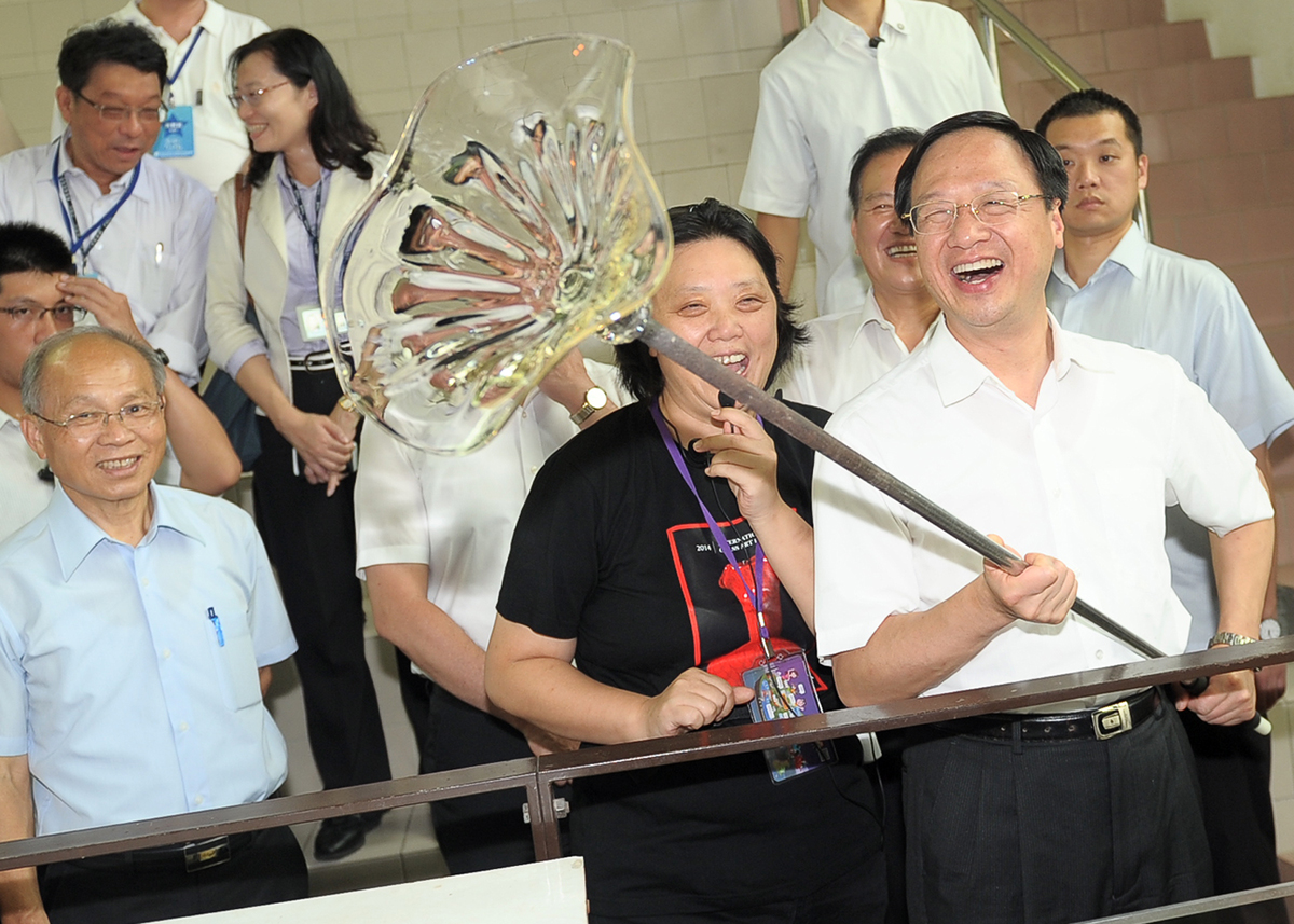江院長強調,臺灣很多在地產業皆是透過在地人才,結合在地資源,將傳統產業發揚光大,新竹在玻璃工藝產業方面的傑出成就,更是大家長期以來共同努力的結果,希望此一優良傳統持續傳承下去。江院長並對新竹市政府多年來致力推動傳統產業轉型為文化創意產業的努力與堅持表示肯定。
