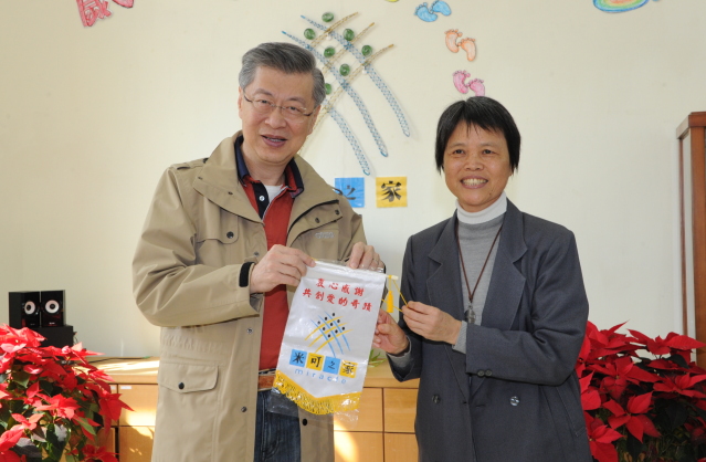 陳院長隨後至財團法人天主教瑪利亞方濟各傳教女修會附設米可之家訪視,他表示政府今年表揚的好人好事代表中,他特別注意到有一位得主從小在育幼院長大,他在育幼院時就發願將來出社會以後,除了自立以外,還要幫助別人,後來他真正去做,而且還發動朋友與其他團體一起幫助其他育幼院,花了很多精神。