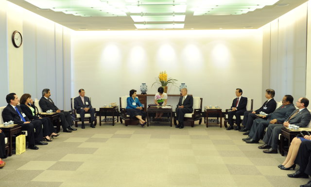 行政院長吳敦義今(15)日在行政院接見中美洲議會代議長莉亞(Hon. Hena Ligia Madrid de Torres)訪問團一行時表示,我國有許多友邦都在中美洲,雖然彼此空間距離很大,但心理距離非常接近,此次訪問團的到來,正是雙方友誼敦睦的具體表現。