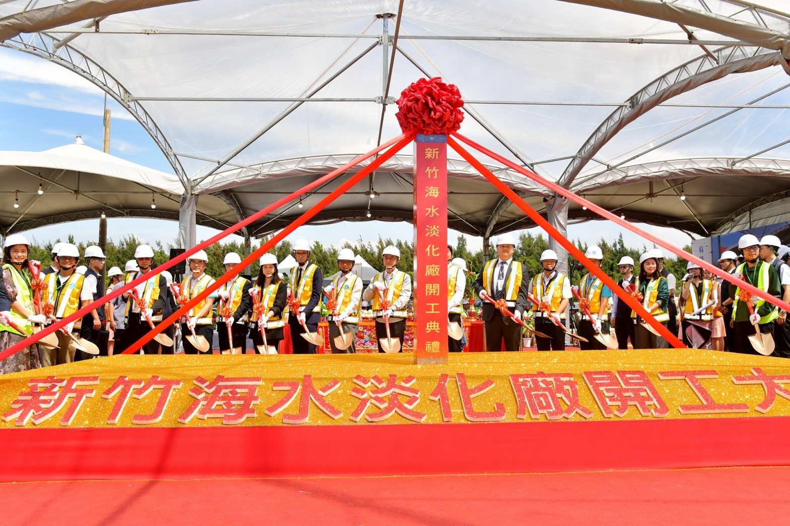 行政院長卓榮泰今(16)日出席「新竹海水淡化廠開工典禮」時表示,新竹海水淡化廠是臺灣本島公辦首見的第一座國際級大型海水淡化廠,未來每年供水3,000萬噸,枯水期每日10萬噸供水。倘寶山-寶二水庫面臨大型旱災時,將有充裕水源可以使用。卓院長請經濟部水利署及施工團隊於2027年如期如質完工,愈早完成新竹海水淡化廠,產業才更能加大力道發展。