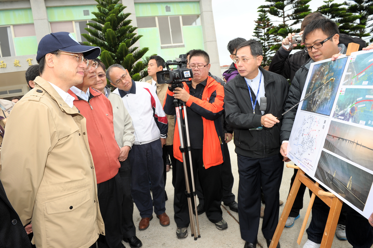 行政院長江宜樺為瞭解澎湖相關公共工程建設及地區發展,今(17)日前往澎湖視察馬公機場工程、中正橋及永安橋改善計畫、澎科大運動設施及澎湖多功能體育館基地。江院長相信相關工程完工後,將改善澎湖的旅運交通及生活機能,也將吸引更多旅客再次感受澎湖之美。