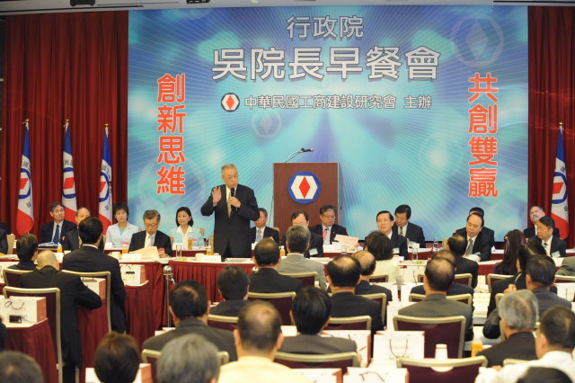 吳院長今天率副院長陳冲、秘書長林中森以及財政部、經濟部、交通部、工程會、新聞局、衛生署及經建會等12個部會和工商建研會共進早餐,用心聆聽工商建研會對政府施政的建言,並一一回應。