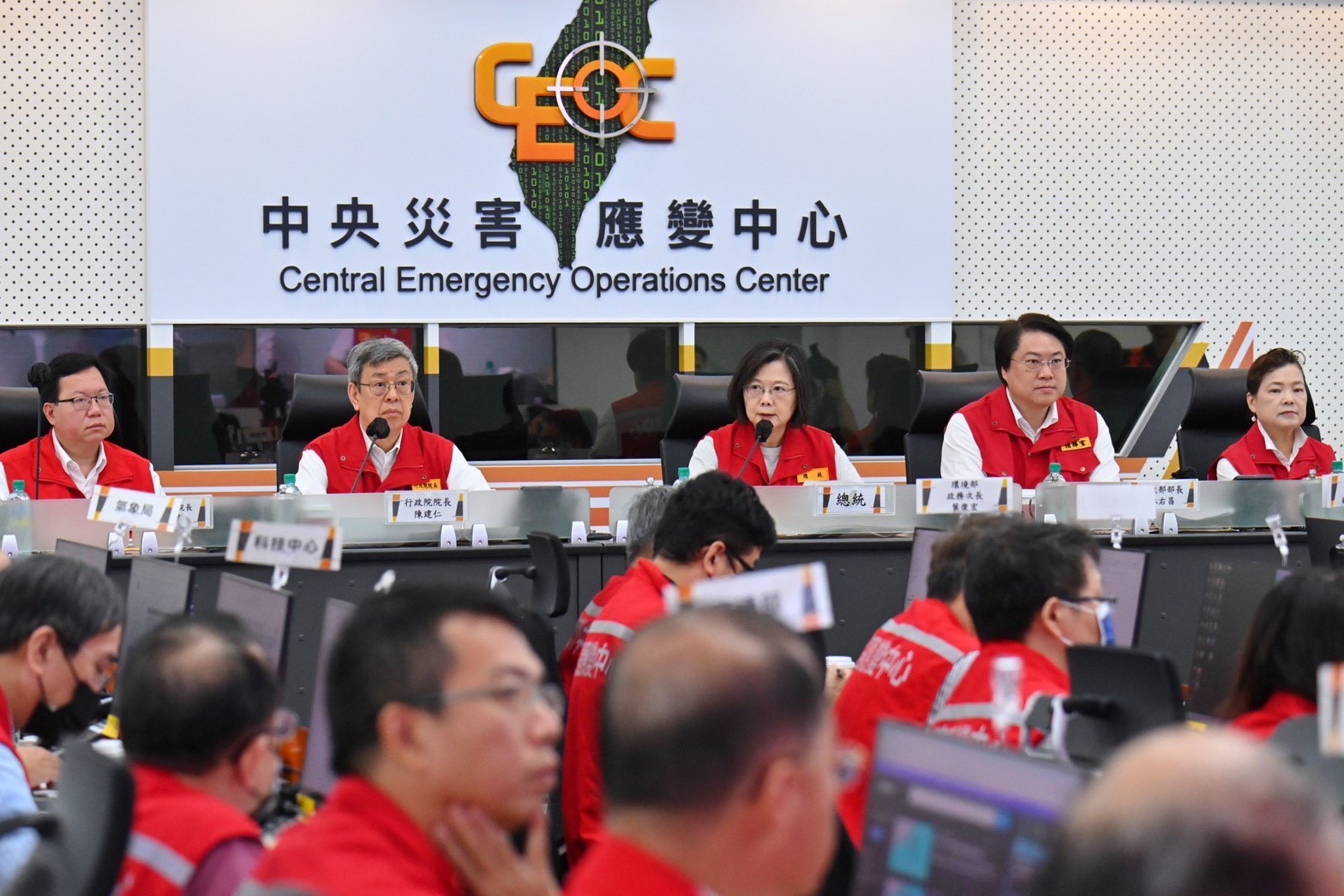 陳院長表示,中央災害應變中心自9月1日開設至今已3天,他要感謝及嘉勉各級政府防災同仁在這段期間不眠不休的辛勞,依災害應變機制,落實各項整備及超前部署防颱應變工作,並提醒第一線災害搶救人員,務必注意自身安全,至盼透過大家堅守崗位、持續努力,將災害減到最少,成功度過颱風威脅。