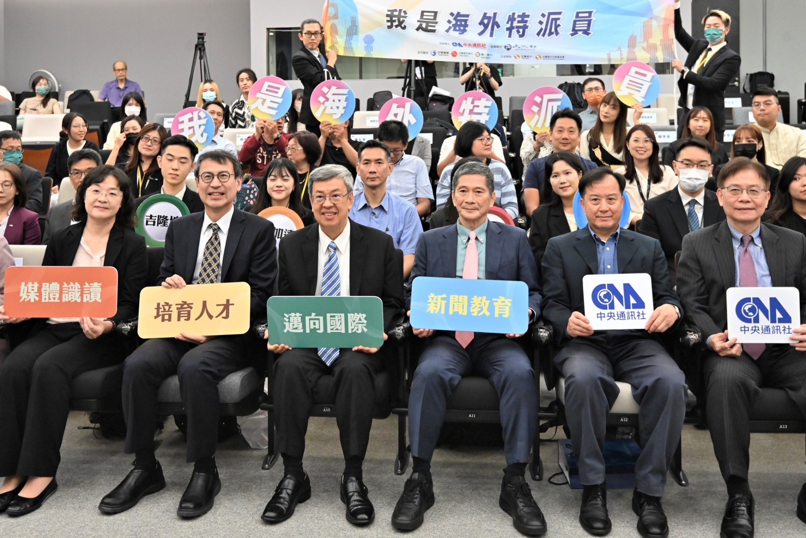 行政院長陳建仁今(26)日出席中央通訊社第六屆我是海外特派員「敲開媒體產業的大門」成果分享會時表示,今(2023)年通過選拔的4名海外特派員,分別派駐美國華盛頓特區、泰國曼谷、馬來西亞吉隆坡及印尼雅加達實習採訪1個月,不但向國人介紹這4座美麗城市的文化、宗教、信仰、美食等特色外,也讓國際看見臺灣,期勉他們將這些寶貴經驗傳承給學校的學弟妹們,鼓勵更多年輕生力軍加入媒體行列,傳遞更正確即時的新聞報導。