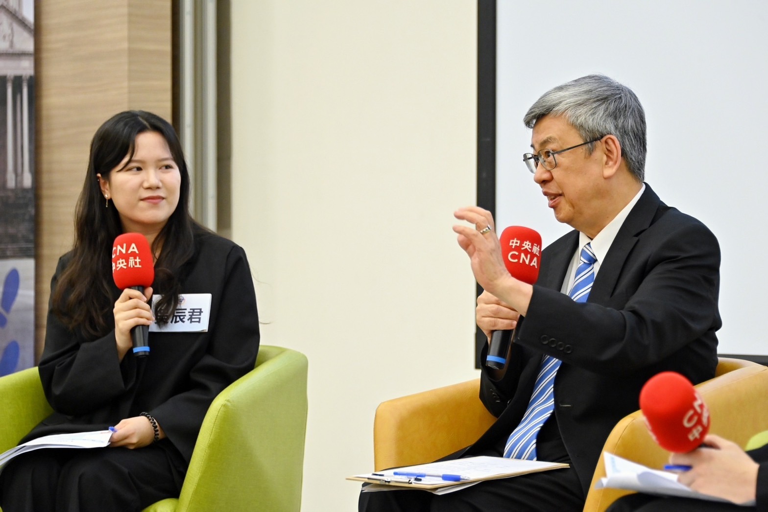 陳院長表示,臺灣享有自由、民主、法治的理念價值,以及蓬勃的經濟發展,且民間團體組織相當活躍,在許多國際人士的眼中,臺灣不僅是東亞的一座小島,更是海中一顆非常珍貴的珍珠,在COVID-19疫情期間,臺灣優異的防疫表現,更讓全世界驚豔不已。對於中央社出版《百年大疫:COVID-19疫情全紀錄》一書,詳實記錄臺灣抗疫的過程,院長也給予肯定。