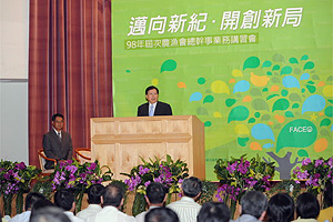 劉院長表示,農漁會長期深耕農漁村、服務農漁民,是台灣地區最重要的地方團體,長期以來,農漁會一直是農漁民與政府間最重要的橋樑,許多重要的政策,均是透過農漁會才能在廣大的農漁村內推動落實,而總幹事就是農漁會的CEO,可說是第一線服務農漁民的掌舵者,透過總幹事的智慧與運作,才能讓政策徹底落實。