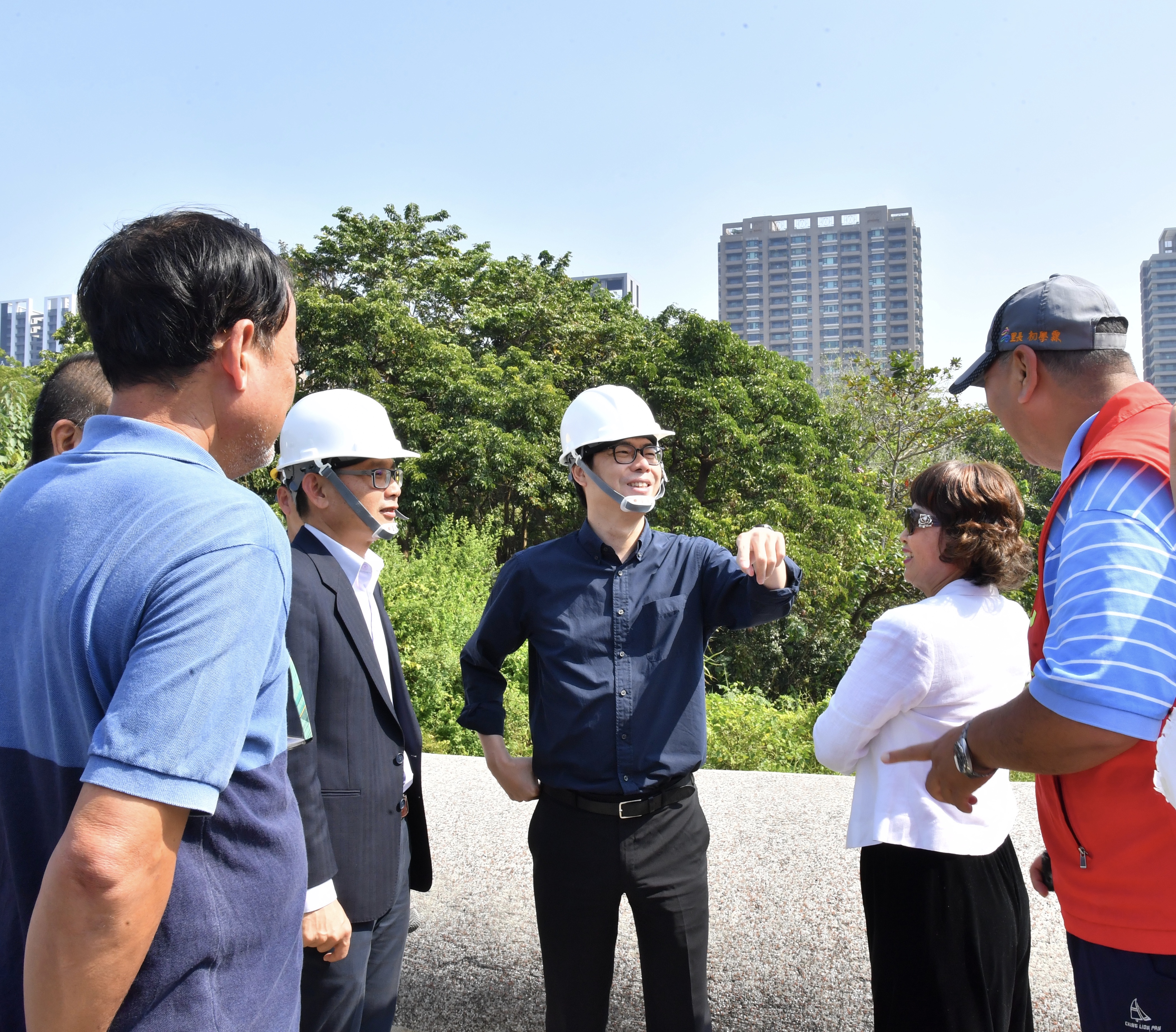 陳其邁第二個行程來到北高雄地區重要核心的內惟埤生態園區,此今天視察的內惟埤生態園區就是其中一項建設,園內的人工湖為北高雄市區之重要遊憩景點與水環境節點,未來透過陸域及水域工程陸續進行,增加市民親水空間及形塑新門戶意象。陳其邁進一步指出,包括內惟生態園區在內的前瞻計畫水環境建設,在高雄有投入40億,其中中央更補助達38億,足見中央對高雄重視。