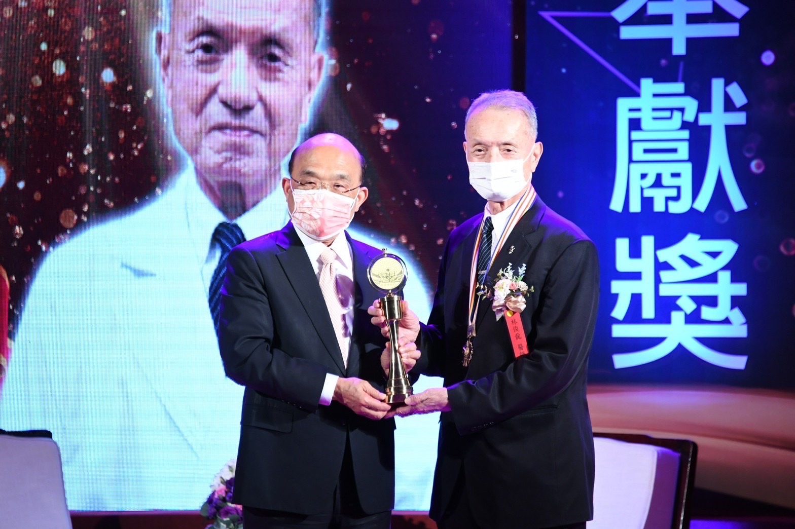 行政院長蘇貞昌今(30)日出席「中華民國第31屆醫療奉獻獎頒獎典禮」時表示,他要特別藉此機會,代表政府向全國醫護朋友致上最高的敬意與謝意,並感謝醫護人員第一線的辛勞,讓臺灣能夠在舉世滔滔的COVID-19疫情之中,守住疫情,成為幸福之地。蘇院長也親頒「個人醫療奉獻獎」予花蓮慈濟醫院的林俊龍醫師,並感謝主辦單位舉辦此一活動,表彰臺灣各地辛苦奉獻的醫護人員,讓後輩能夠學習跟進,也讓國人記住這些美麗感人的故事。