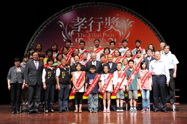 行政院長吳敦義今(29)日出席「100年全國孝行獎」表揚典禮時表示,30位孝行楷模大多來自不算富裕的家庭環境,卻能堅苦卓絕,發揚孝道,是公認的台灣之光。 吳院長指出,30位孝行楷模有些來自單親家庭或是父母親身體有病痛,大多是不算寛裕的家庭,其中也包括子女將自己的肝臟移植給自己的父母,每一椿孝行都令人感佩、動容,而這些楷模在縣市政府及內政部嚴謹查訪及見證程序之後,到場接受隆重表揚,發揚孝行,是國家、台灣社會重視孝道的標竿。 吳院長並親自頒發孝行獎座給年僅9歲的孝行楷模胡珮珊同學,並彎下腰來在她耳邊講話,給她鼓勵;另也親頒獎座給年紀最長,65歲的游文龍先生,並與所有孝行楷模合影。 稍晚,吳院長出席「2011總統教育獎」晚宴致詞時表示,在600多位已是出類拔萃的同學之中,經過非常嚴謹的評選,最後僅有55位得到這個獎,並由馬總統親自頒發這項榮譽,感到國家深慶得人。他強調,今天受獎的同學是台灣的驕傲,也是為了台灣向上躍升、向前邁進,非常可貴的動力,這股從小學開始,未來繼起的、源源不絕的生命力,將會繼續帶領中華民國向前邁進。