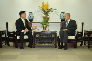 吳院長今天在行政院秘書長林中森、財政部次長許志堅、經建會副主委黃萬翔,以及內政部、行政院法規會等相關人員陪同下接見台北市長郝龍斌。郝市長請求行政院協助台北市推動社子島開發計畫,以利掌握行政時程;同時也請求行政院協助「都市更新條例」修法,讓台北市老舊危險建築在拆遷後,由台北市政府發給建物存記證明,確保屋主的容積獎勵及都市更新比例,提高民眾拆除老舊建物的意願,協助改善都市景觀。