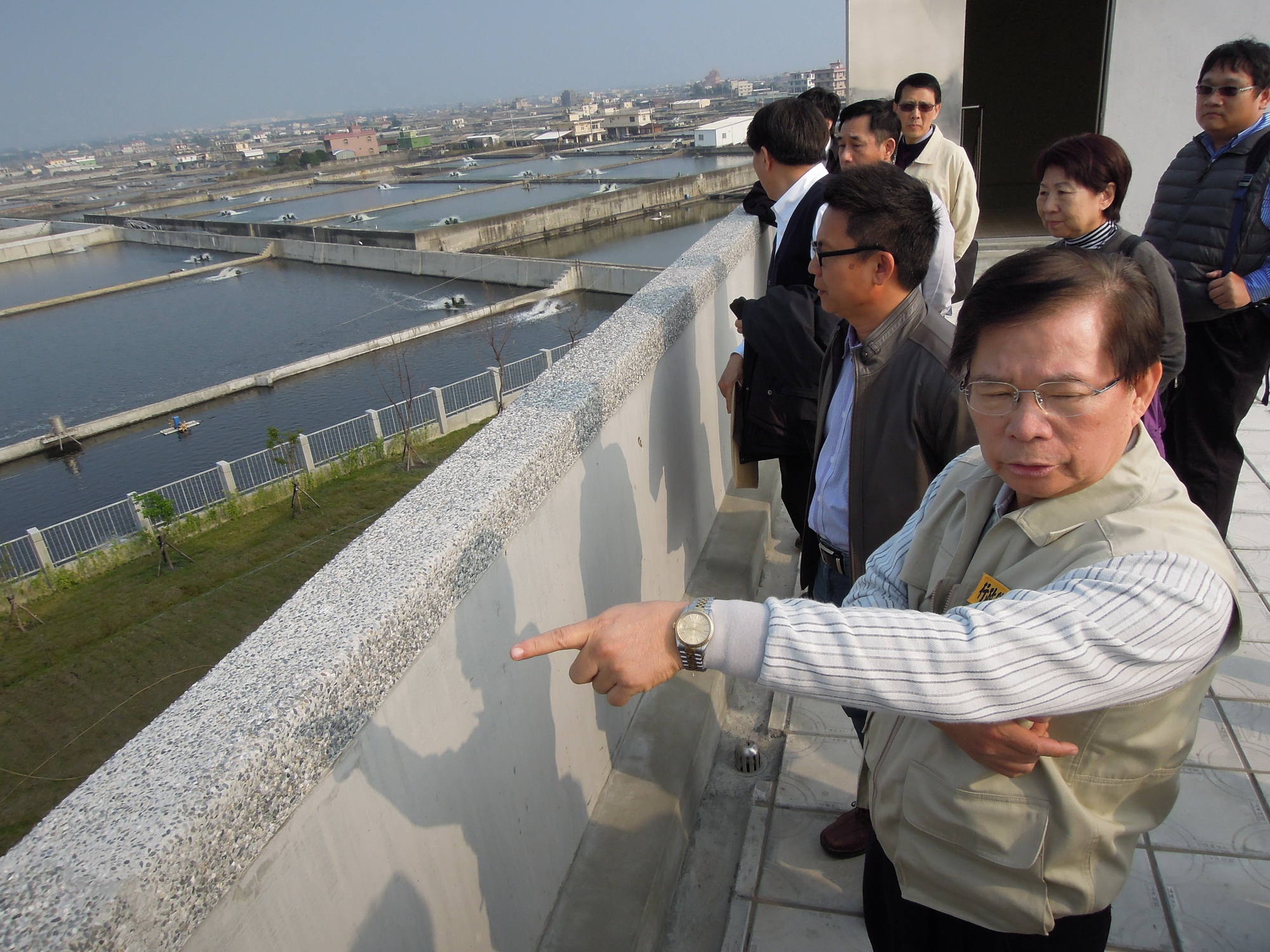 隨後,簡副秘書長前往屏東縣佳冬鄉塭豐養殖漁業生產區現地查證,勘察農委會在屏東縣推廣海水養殖及塭豐海水統籌供應系統建設情況,並瞭解經濟部後續規劃拆除跨堤抽取海水情形。