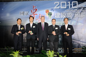 吳院長指出,從「2010國家卓越建設獎」公正、專業與認真評審過程中選出的優秀傑出作品,讓人見識到嚴謹的規劃設計、卓越的施工品質及完善的維護管理,並營造自然與文化關懷的建築。這些獲獎作品象徵著台灣競爭力的向上提升,也顯現出民間充沛的活力,角逐國際競賽獲得諸多榮譽,實為台灣之光。