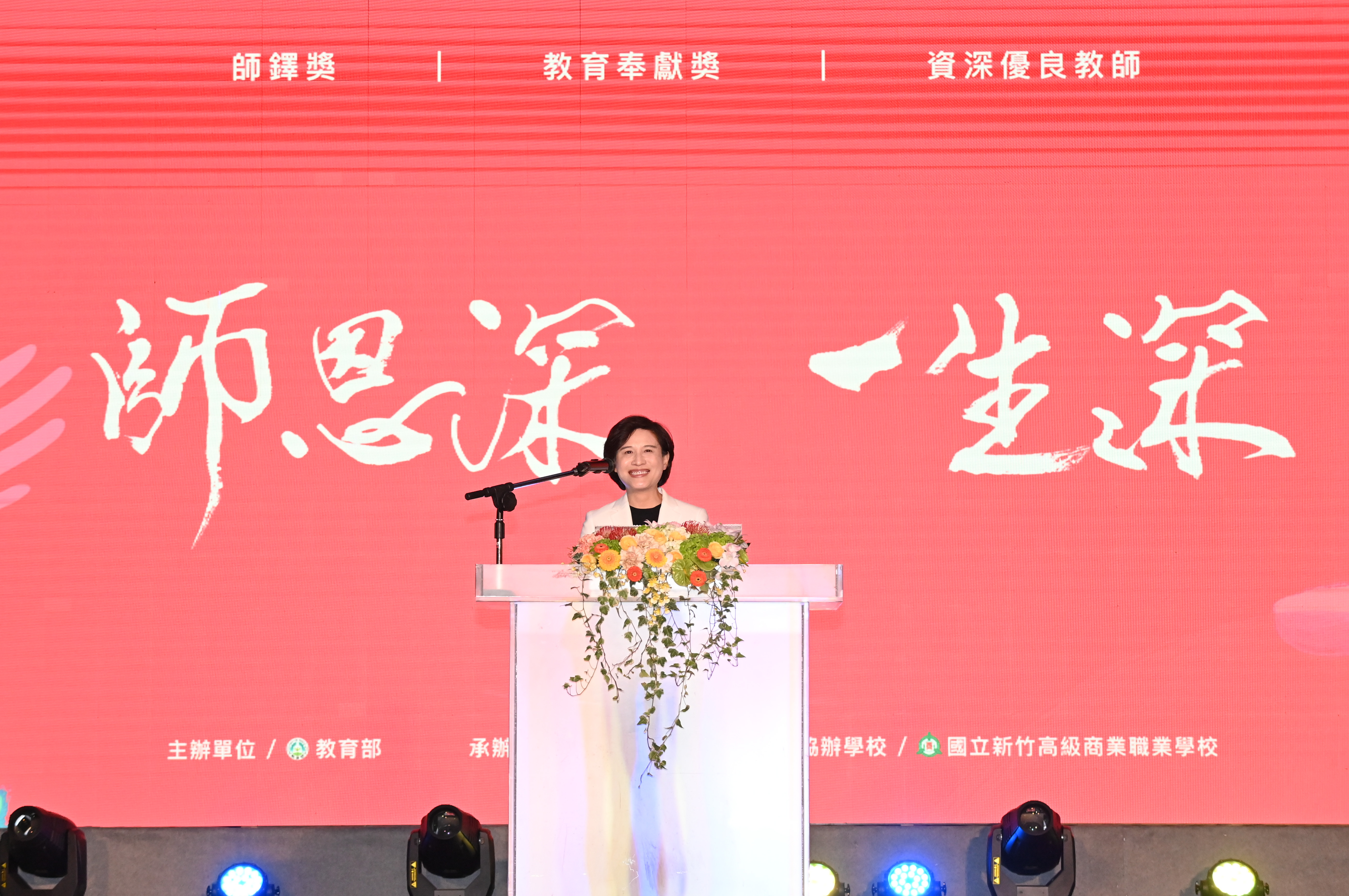 看著在座的師長們,鄭副院長也感性地說,她非常感謝每一位曾經教導、照顧與鼓勵她,並且願意聆聽、包容和陪伴她走過年輕叛逆時光的老師們,讓她有勇氣追尋自己的夢想走到今天。如今,她身為一位10歲孩子的母親,更能親身感受到老師們的辛苦,不僅在教學方法上不斷創新成長,更運用社群媒體,與家長保持緊密的親師互動,希望政府透過政策投資教育的同時,也實現所有在教育現場的老師們的理想,讓孩子們都能成為更好的自己,也讓臺灣成為更好的臺灣。