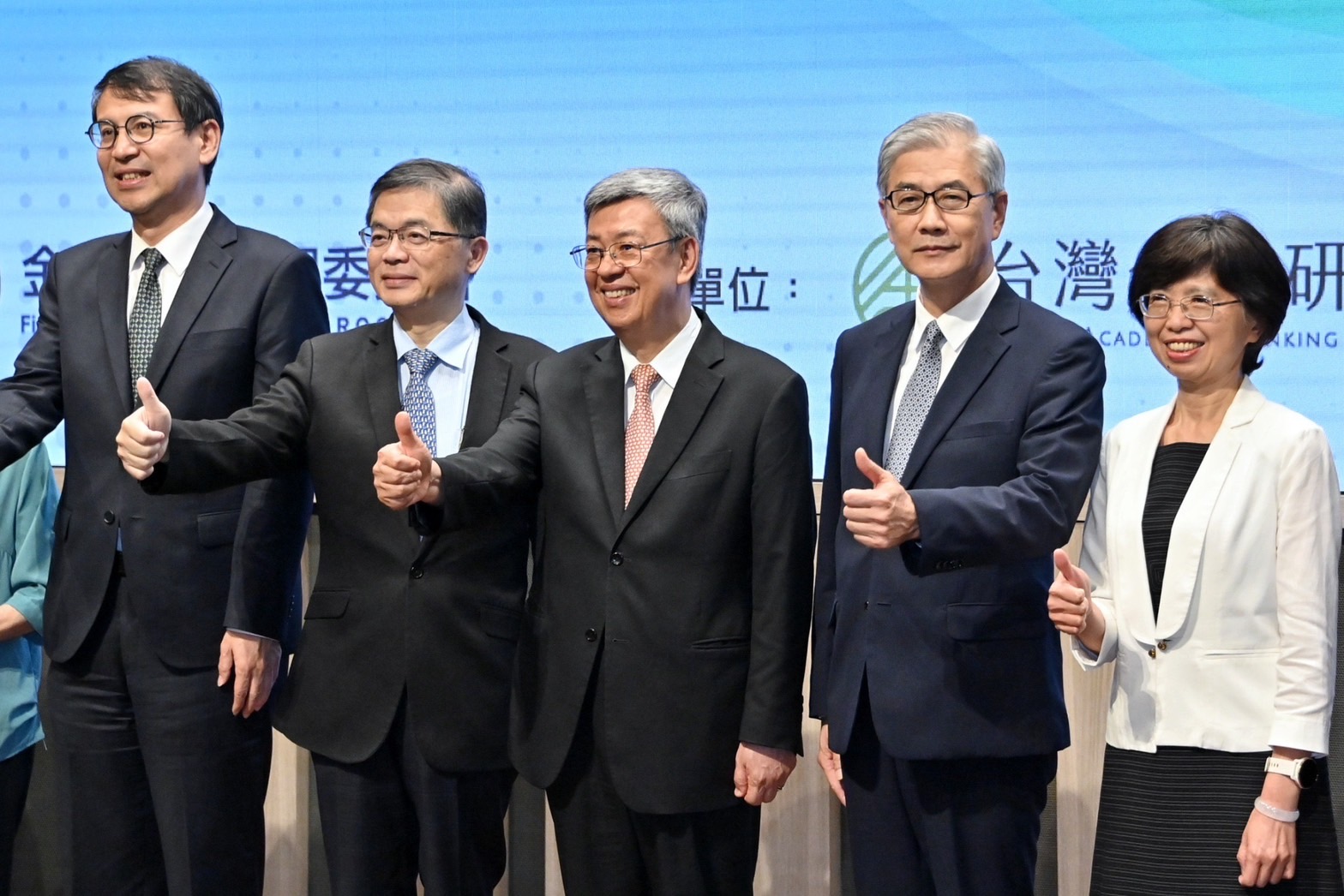 此行,陳院長先觀賞開場影片,並於致詞結束後,頒發「最佳信託獎」、「安養信託獎」、「員工福利信託獎」及「信託業務創新獎」予得獎銀行代表。隨後,陳院長與行政院李孟諺秘書長、林子倫發言人、金管會黃天牧主委、銀行局莊琇媛局長及得獎銀行代表合影留念。
