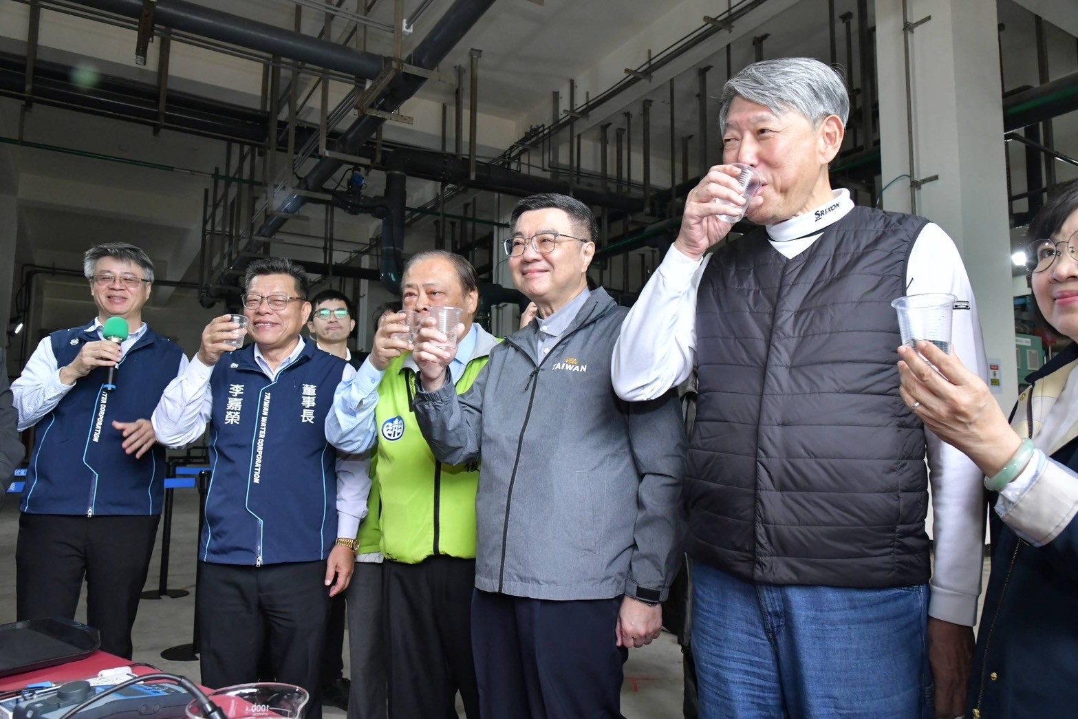 此行,卓院長到場後首先聽取台水公司李嘉榮董事長說明「澎湖地區供水情形及馬公海淡廠」簡報,了解澎湖地區自來水供水情形、離島供水改善二期計畫,以及強化供水韌性及管理。致詞結束後,卓院長偕同行政院龔明鑫秘書長、李慧芝發言人、經濟部郭智輝部長、行政院南部聯合服務中心陳慧玲副執行長、澎湖縣陳光復縣長、台水公司李嘉榮董事長、李丁來總經理一行,視察馬公6,000噸海水淡化廠,於RO機房了解海水淡化步驟與環節,並試飲海淡水。