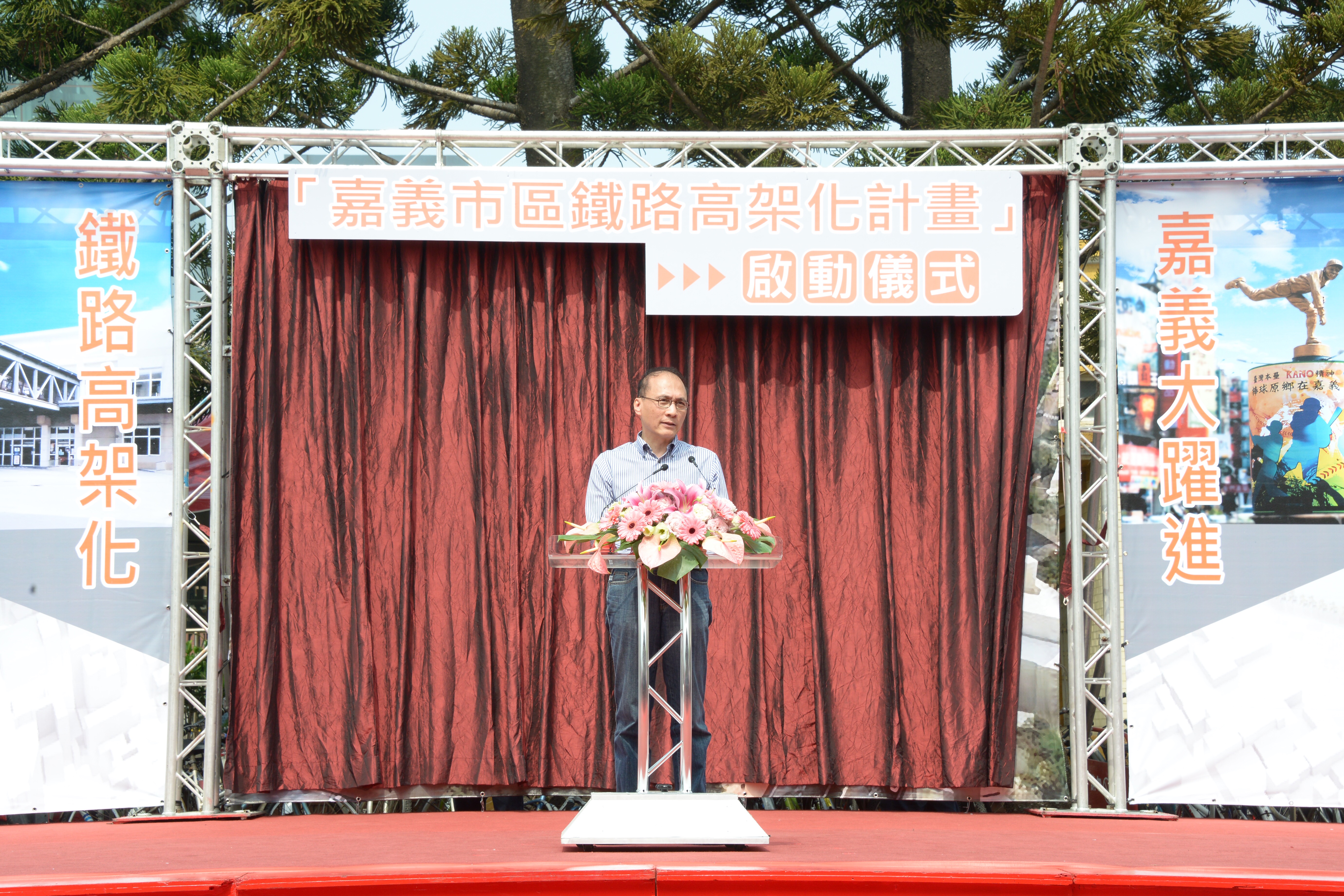 林院長指出,嘉義市區鐵路高架化計畫已提出多年,礙於市府財政負擔未能推動,經涂醒哲市長多方奔走,蔡總統也指示要優先解決。因此行政院重新審視計畫,將經費負擔問題加以調整,目前大致定案,綜合規劃部份已由地方政府提報國發會,再提報行政院,預計近期內可以核定,並納入「前瞻基礎建設特別預算」。總工程經費275餘億元,嘉義縣政府負擔約38.9億元,且分攤9年,相信嘉義市政府應可負擔,且有能力再推動其他建設。