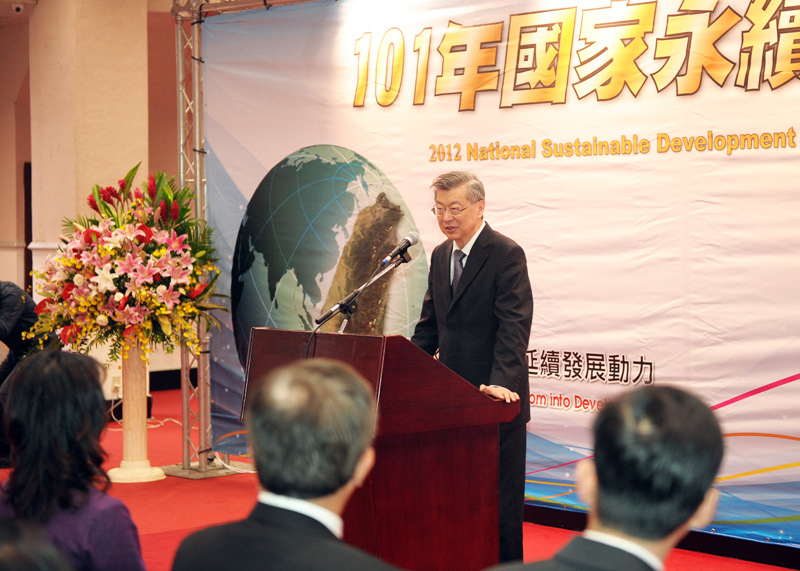 行政院長陳冲今(6)日出席在行政院大禮堂由行政院國家永續發展委員會主辦的「101年國家永續發展獎」頒獎典禮,表揚推動永續發展績效卓著的12個得獎單位。