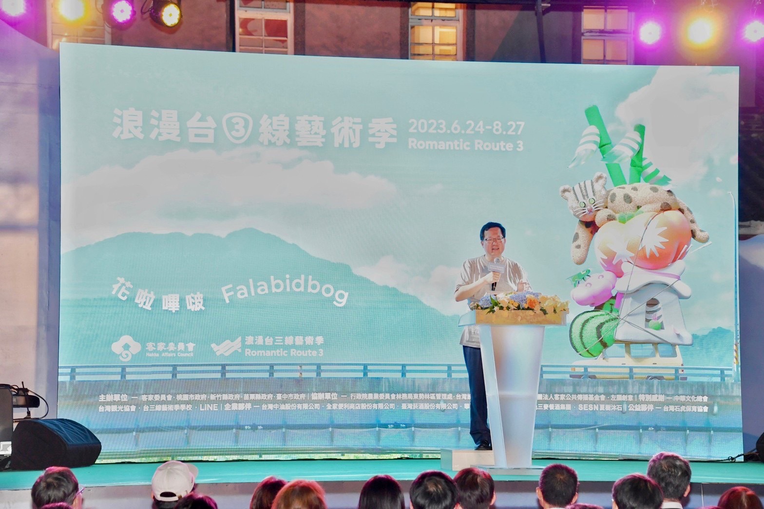 鄭副院長於致詞時指出,蔡英文總統上任後,於2017年推動「浪漫台三線計畫」,也是他在桃園市長任內相當用心耕耘的計畫之一。該計畫以4年20億元經費,在台三線、六堆、台九線等地區進行基礎建設,並接續在2020年編列25億元推動「客庄369幸福計畫」,希望以嶄新概念推動客家文化活動,重新定義客家傳統、翻轉客家印象。而本屆浪漫台三線藝術季的2億4千萬元預算,行政院也全力支持。