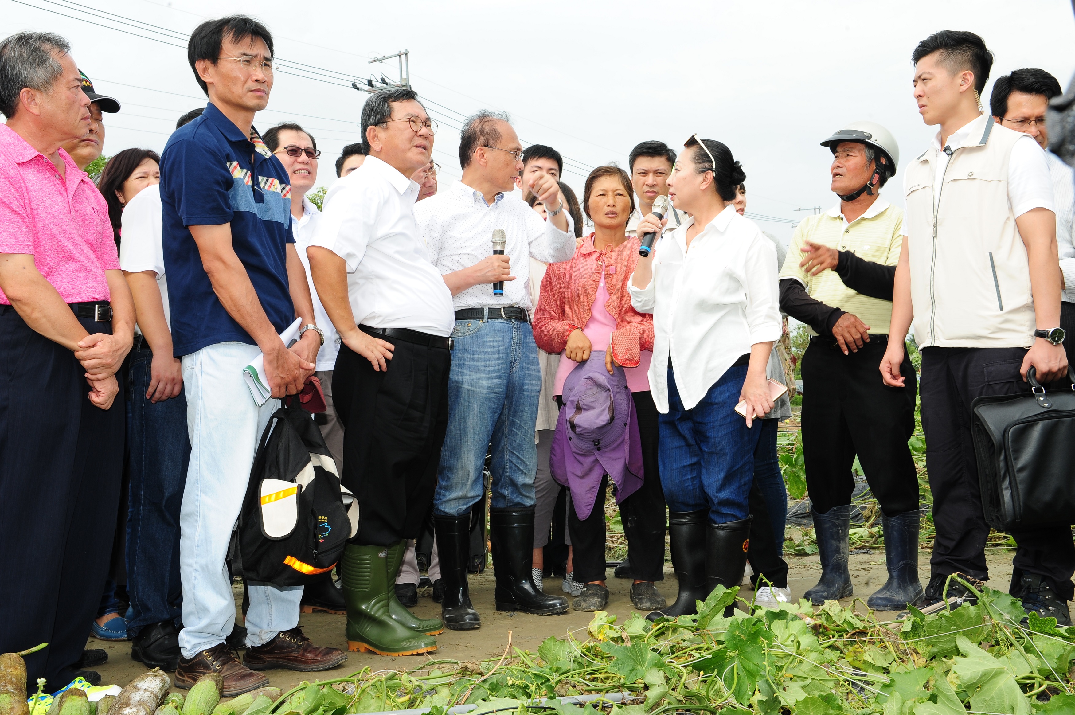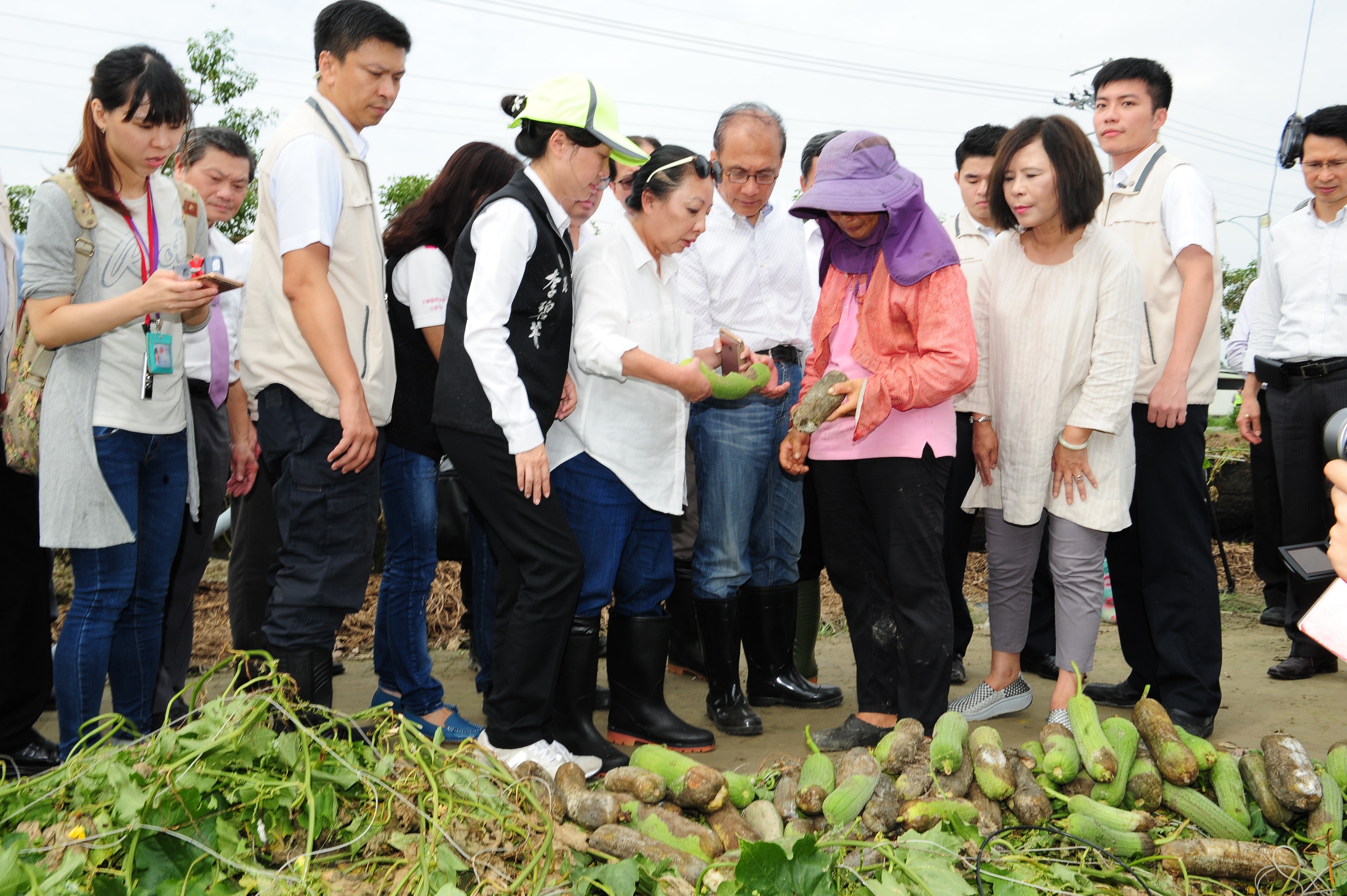 梅姬颱風肆虐全台,行政院長林全今(1)日前往嘉義縣東石海埔地及中埔鄉實地瞭解受損情形。在視察中埔鄉農友鄧美雲女士的絲瓜田時,面對滿目絲瓜棚架倒塌的災損情形,林院長重申除放寬現金救助受損20%的認定標準,並強調農委會已備妥方案,設施重建補助從1/3提高為1/2,協助農民強化抗風設施,其餘的1/2經費,農民可向農會辦理低利貸款,第一年免息。