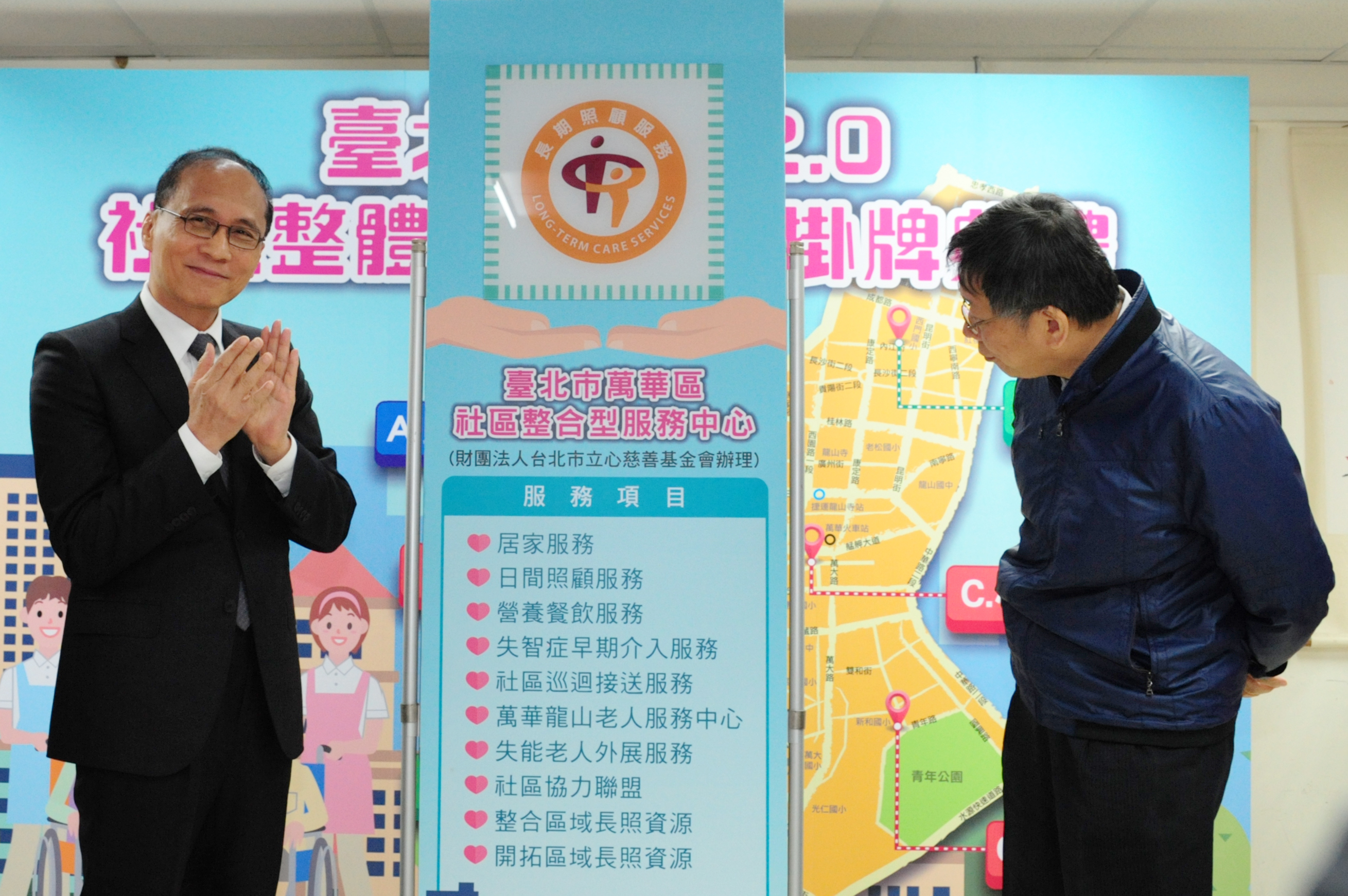 為落實「長期照顧十年計畫2.0」,今(16)日長照中心在全台所有縣市共同掛牌,蔡總統前往雲林縣與嘉義縣的長照中心,行政院長林全則赴台北長照2.0的A級單位萬華區龍山老人服務暨日間照顧中心,至於其他縣市分別由縣市長主持揭牌儀式,宣示政府決心,長照2.0將於明(106)年1月1日正式上路。