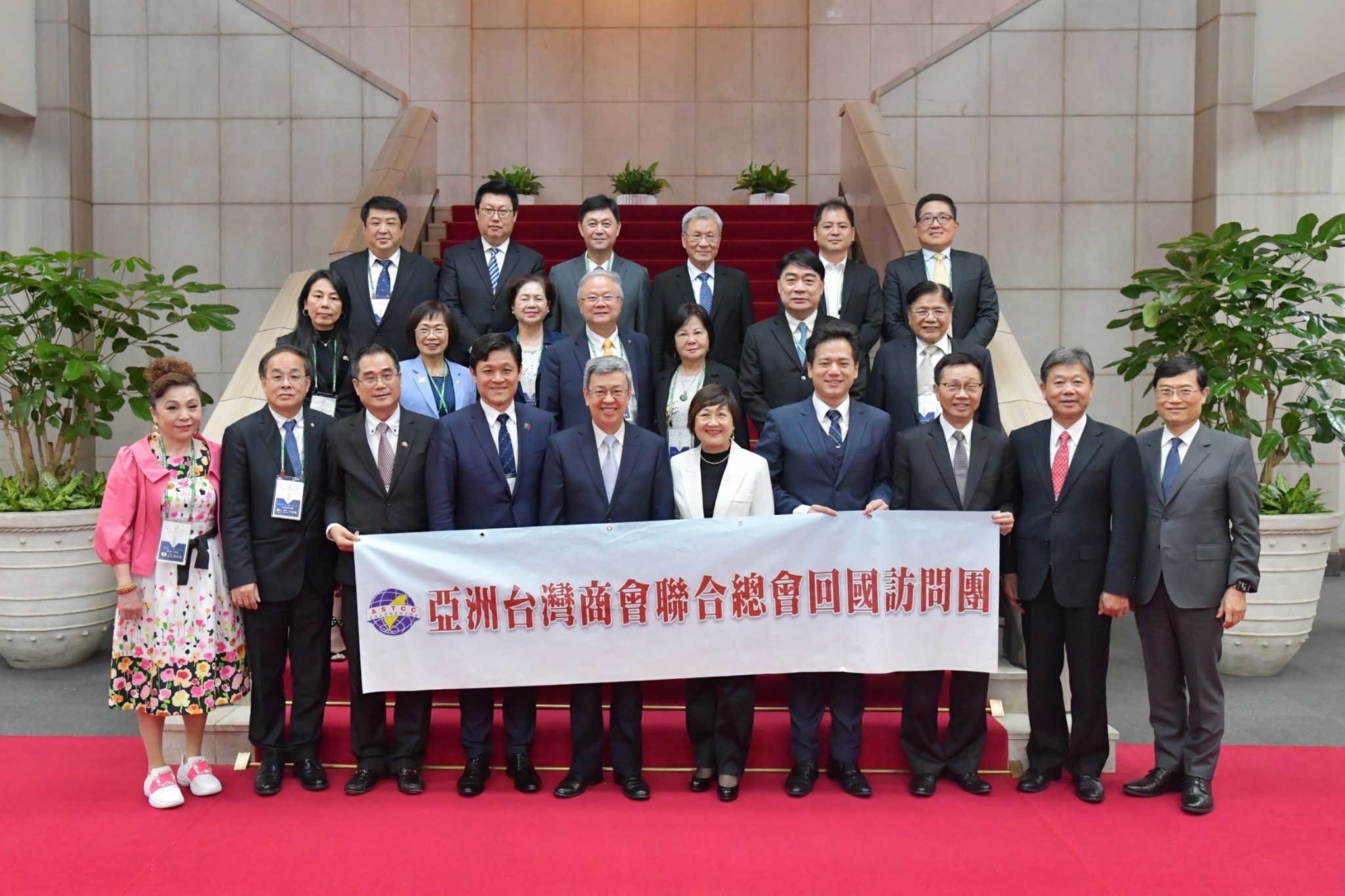 行政院長陳建仁今(27)日接見「亞洲臺灣商會聯合總會回國訪問團」時表示,亞洲臺商總會歷史悠久,除了凝聚亞洲臺商力量,協助海外臺商發展事業外,更成功增進臺灣與亞洲各國實質友好關係,構築堅強的民間交流基礎,並協助爭取「跨太平洋夥伴全面進步協定」(CPTPP)會員國支持臺灣加入該協定,積極為臺灣發聲。而政府也從各方面照顧臺商,如輔導海外信用保證基金辦理疫情相關紓困等,至盼各臺商能持續協助培育下一代青年人才投入商會服務,為國家奉獻心力。