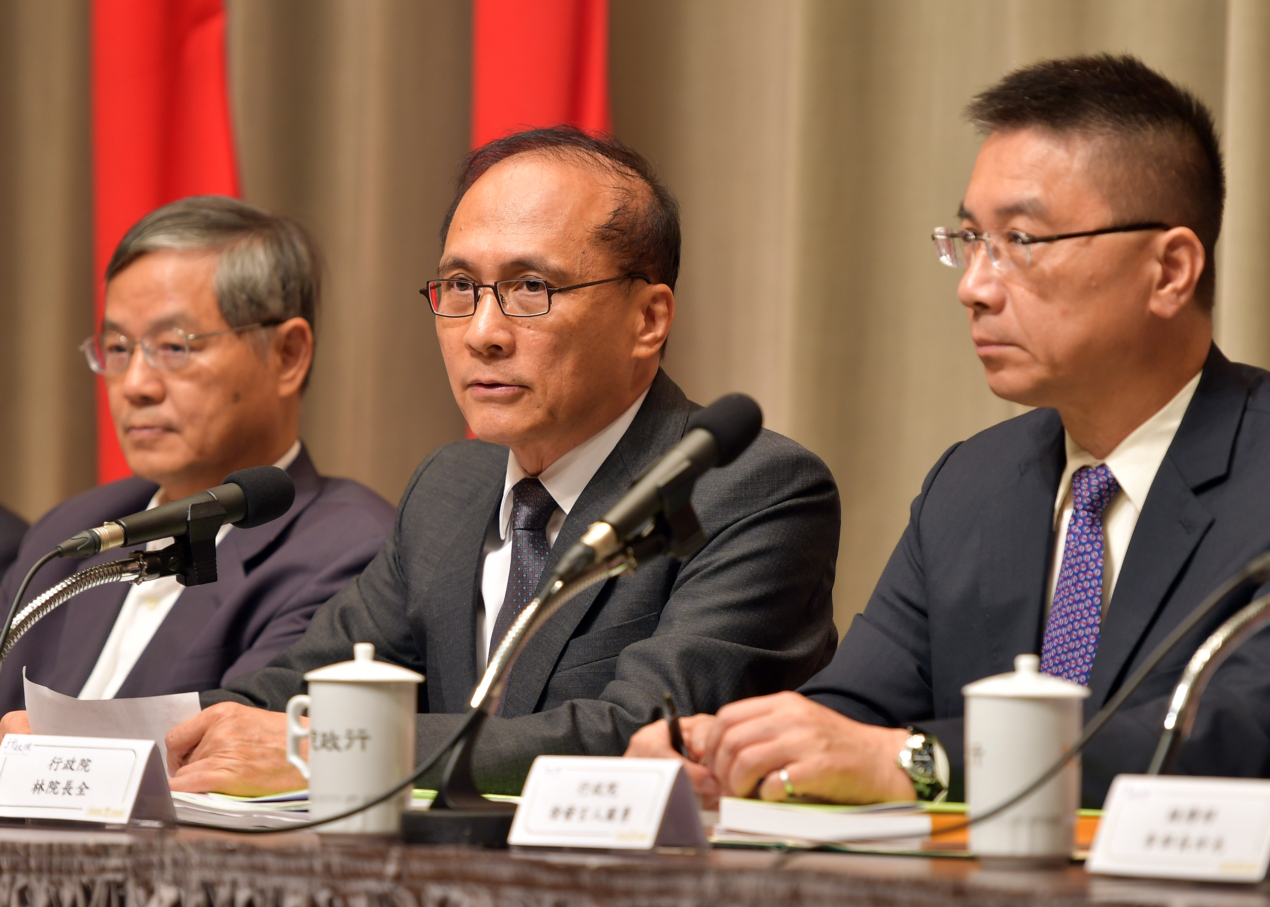 今日記者會出席的有行政院發言人徐國勇、行政院主計總處主計長朱澤民、國發會主委陳添枝、交通部長賀陳旦、經濟部長李世光、科技部長陳良基及衛福部長陳時中。