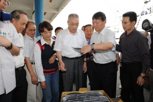 吳院長說,高雄是全台灣最重要的漁業生產、補撈、或營業的地方,過去他又有八年半的時間在高雄服務,所以知道漁業裡秋刀魚是大宗,這次ECFA談判,農業部份有18項,包括漁類列入了中國大陸可以減免關稅的早收清單,因此一方面來看秋刀魚的運搬船「長慶一號」,也聽取意見,並進一步暸解還有好多漁類沒有列入第一期的早收清單,這都需將來與中國大陸談判洽商,作為提出後續清單的重要參考。吳院長指出,ECFA所有的談判,都是為人民好,都是為台灣的產業好,包括農業、漁業、工業、勞工,政府都要重視。他說,台灣漁業及農業的產品非常豐富,如秋刀魚、虱目魚等,石斑魚也都外銷,因此,他鼓勵大家要多食用台灣的農產、水果及漁產品。
