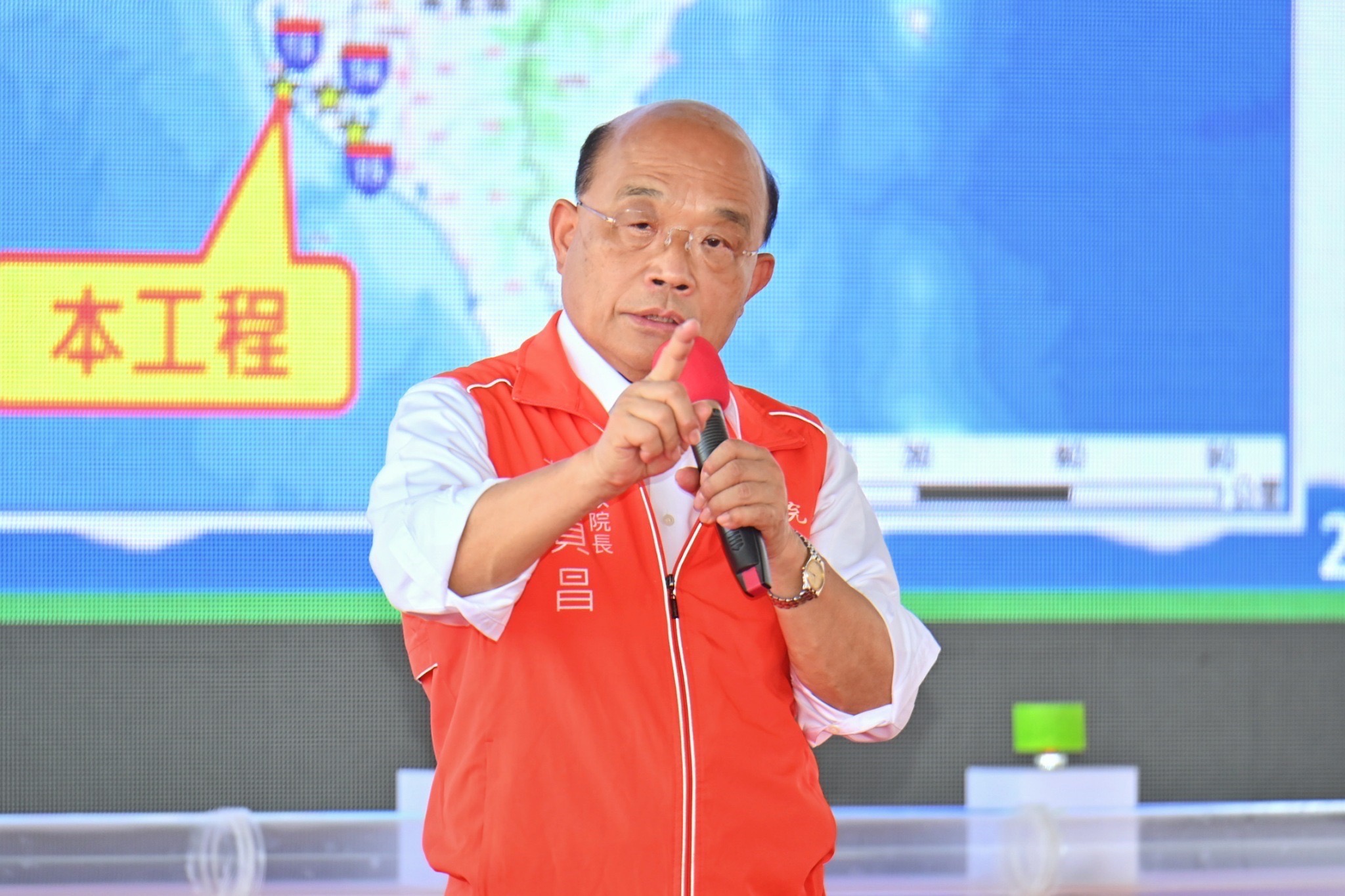 蘇院長表示,在推動全國水資源建設方面,其中有一項「備援調度幹管工程計畫」,即規劃在全臺興建17條備援管線,而推動目的主要係因臺灣有許多自來水管線因使用年限已久,每年漏水量達1個石門水庫之多。有鑑於此,政府在既有的老舊管線外,新設第2條備援水管,一旦新水管完成後,舊水管即可進行汰舊換新,不僅施工時不需停水,也改善當地自來水的漏水率,在在彰顯蔡政府的前瞻與魄力。蘇院長也舉去年他赴基隆視察「基隆市過港路汰換管線工程」為例表示,他當時發現當地廟口夜市水管已使用53年,水管內盡是鐵鏽,影響當地自來水的供給,因此政府立刻利用COVID-19疫情夜市休市期間,將水管全面汰舊換新。
