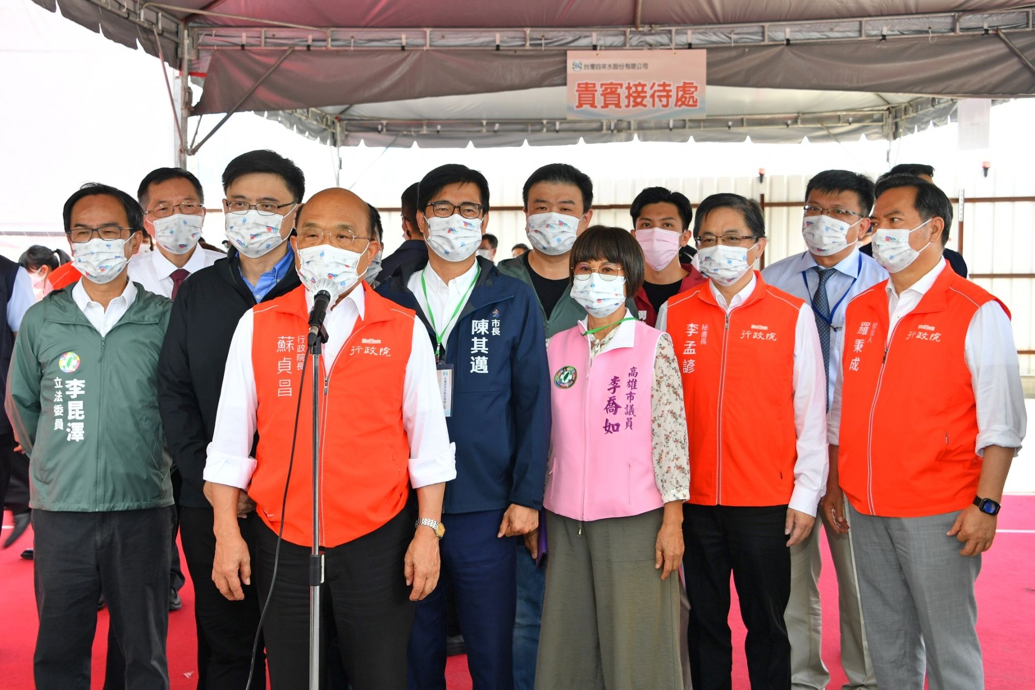 蘇院長強調,他相當重視專業和會做事的人才,而胡董事長從自來水公司基層做起,久任其職,因此獲得他的賞識擔任董事長一職,並領導同仁有方,同時他也要感謝該工程設計監造公司及營造廠商使用新工法,並於疫情期間提前完工;其次,院長也感謝高雄市陳其邁市長率領市府團隊共同合作,以及高雄在地議員全力支持,同時也感謝交通部臺灣鐵路管理局及臺灣港務公司配合相關土地租賃事宜。另外,蘇院長也感謝執政黨立委在立法院大力支持前瞻預算,使該預算能夠順利通過,讓政府能夠推動「備援調度幹管工程計畫」。