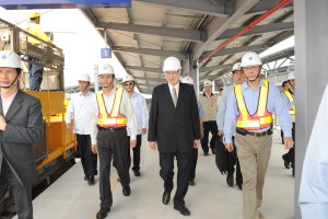 行政院長吳敦義今(28)日視察「台鐵台南沙崙支線工程計畫」,從台鐵沙崙站到長榮大學站搭乘工程電搖車實地瞭解完工進度,並慰勉交通部鐵路改建工程局工作人員。吳院長表示,台鐵台南沙崙支線完工通車後,不僅成為連結台南科學園區、台南市區及高鐵台南站一條重要的交通運輸路線,也為即將成為直轄市的大台南市民眾帶來轉乘的便利,希望施工單位如期、如質在今年底完成,民國100年元旦正式通車營運。