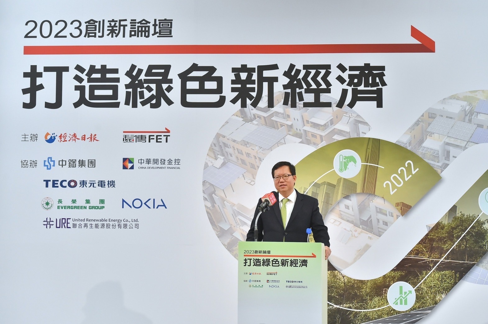 行政院副院長鄭文燦今(22)日出席「2023創新論壇–打造綠色新經濟」時表示,減碳是項挑戰,同時也是商機,應將綠色經濟視為一項重要產業看待,而目前國內已有許多產業開始積極運用循環經濟概念,轉型成為綠色、智慧工廠。鄭副院長指出,行政院已核定「淨零排放路徑112-115綱要計畫」,讓國內各項產業、相關領域與國際接軌;在減碳方面,也希望透過大企業「以大帶小」模式,為整體產業供應鏈建立完善的碳排放管理機制,讓臺灣永續發展。