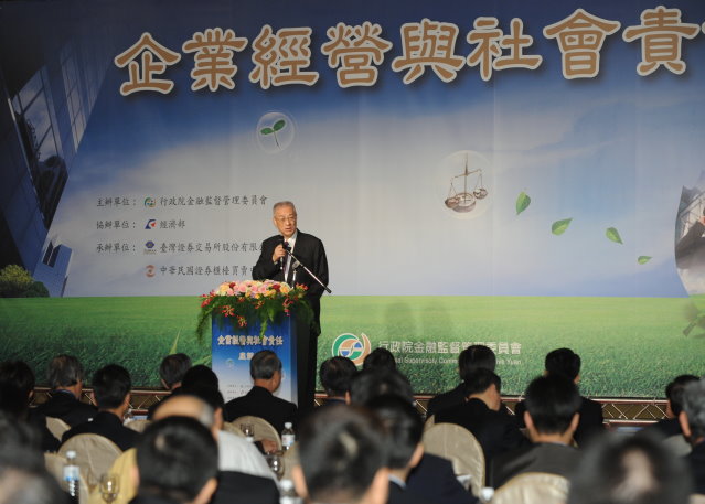 行政院長吳敦義今(13)日出席金管會及經濟部合辦的第二場「企業經營與社會責任」座談會時表示,政府努力的目標有二,第一要全力促進經濟的繁榮及復甦;其次要重視所得分配的更加平衡,也就是採取有效的措施,讓所得分配更加合理,讓經濟成長的果實能夠全民共享。 吳院長指出,馬總統及前行政院長劉兆玄在金融海嘯肆虐全球之際,率先採取銀行存款全額保障,穩定了金融與社會的民心,隨後陸續推動消費劵的發行與擴大公共建設,目的都是為了促進經濟發展。另營所稅在產業創新條例當中從25%降到17%,這是中華民國稅政史上「輕稅簡政」的具體行動,也是朝向更公平化的重要分水嶺,以期增進企業的活力及競爭力。 吳院長表示,在瑞士洛桑國際管理學院的全球評比當中,我國的競爭力從原本第23名,一舉躍進到第8名;另ECFA的簽署則達到了馬總統所揭示的「幫助人民做生意,提升台灣競爭力」,確實落實「以台灣為主,對人民有利」的施政理想。 吳院長也指出,企業因為政府減稅、環境改善及競爭力的加強,獲利增加,希望不僅是股東,還有參與打拼,創造企業營收果實的員工們,也都能分享公司營利的成果,如此才能增進社會整體的和諧。 吳院長期許所有企業的負責人,基於公司治理理念的堅持,都能強化競爭力,並期盼他們也能督促政府提升行政效率,共同把台灣的經濟繼續往上躍升。同時,他也希望所有企業主都能善體社會期待、配合環保及節能減碳,並用愛心對員工提供最好的工作環境、福利及待遇,來共同建立一個溫馨及公平的社會。 吳院長最後感謝所有企業主的貢獻並祝福大家「日進斗金賺大錢、守法重義繳稅多、善待員工闔家樂、節能減碳愛臺灣」。 「企業經營與社會責任」第二場座談會仍由吳院長親自主持,行政院副院長陳冲、秘書長林中森、財政部長李述德、勞委會主委王如玄、金管會主委陳裕璋、經建會副主委單驥、經濟部主秘周作姍及新聞局主秘蘇瑞仁等亦一同與會。